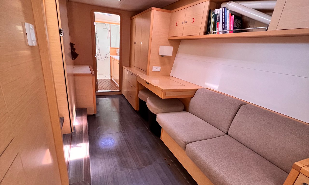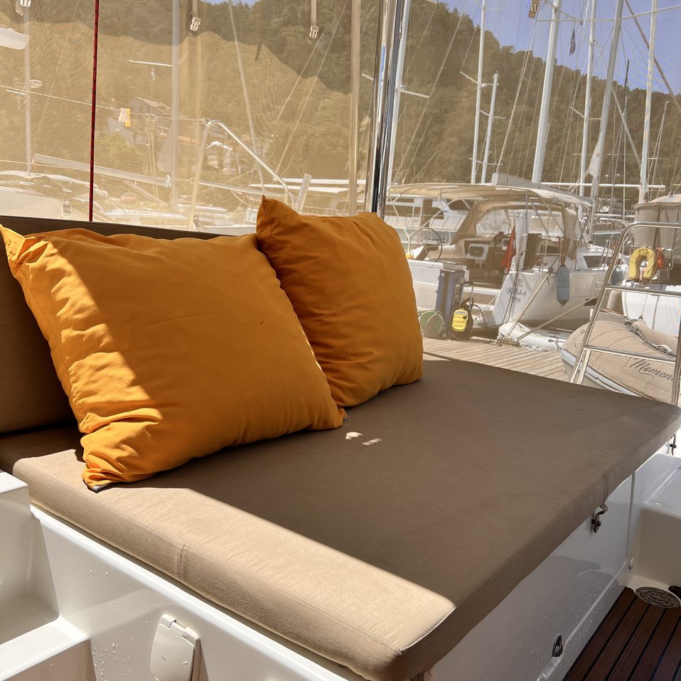 | Outside | Badeleiter, Cockpitdusche, Cockpitlautsprecher, Cockpitpolster, elektr. Ankerwinsch, elektr. Winsch, Solaranlage, Sonnendeck, Windex |
