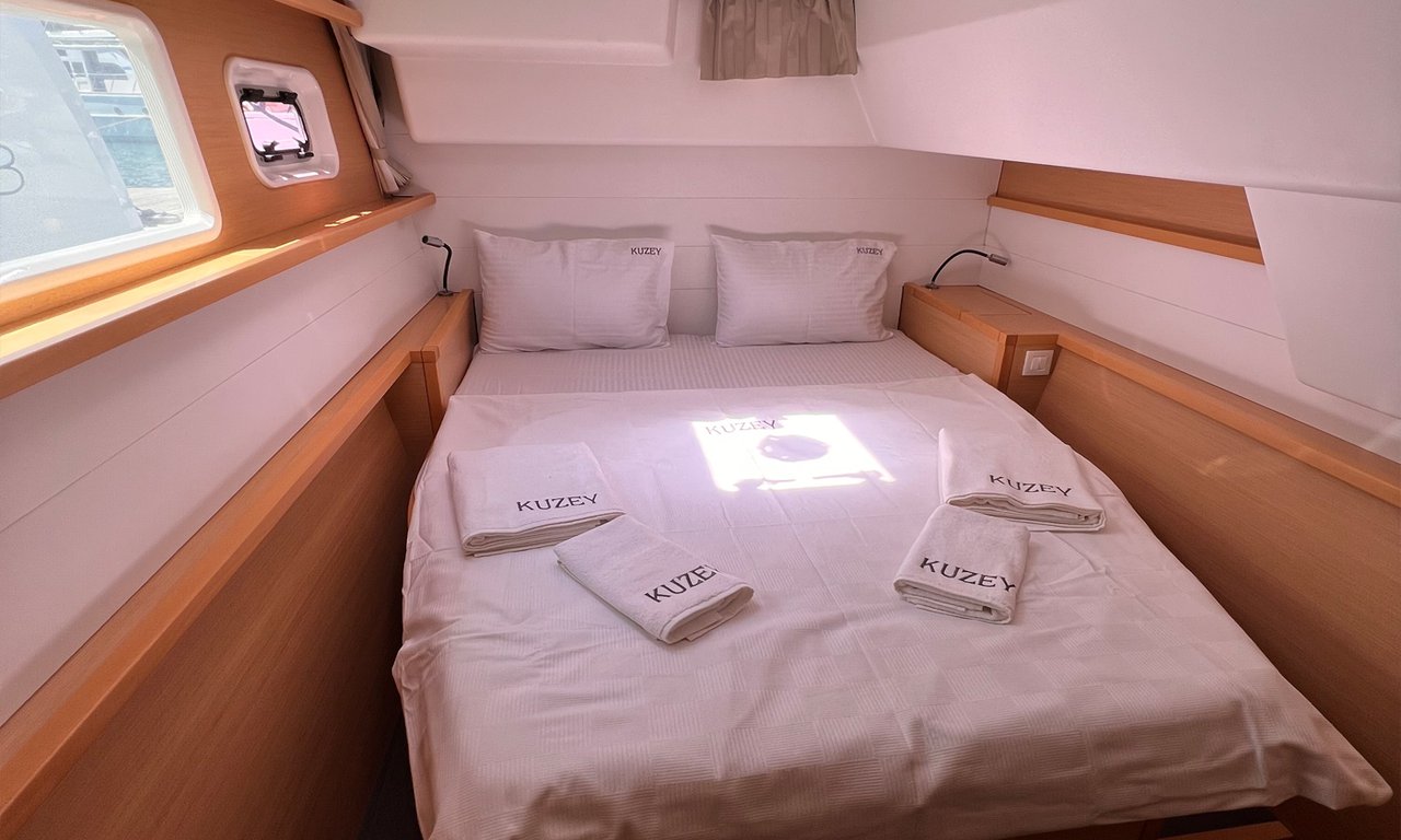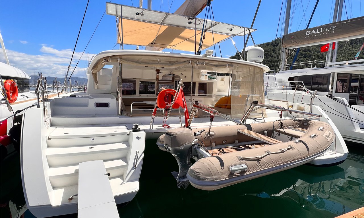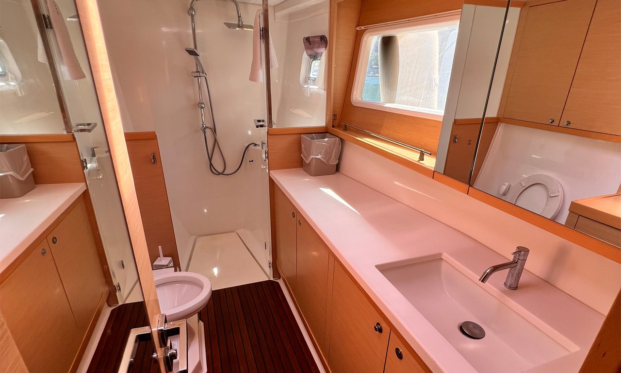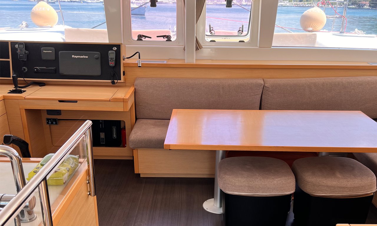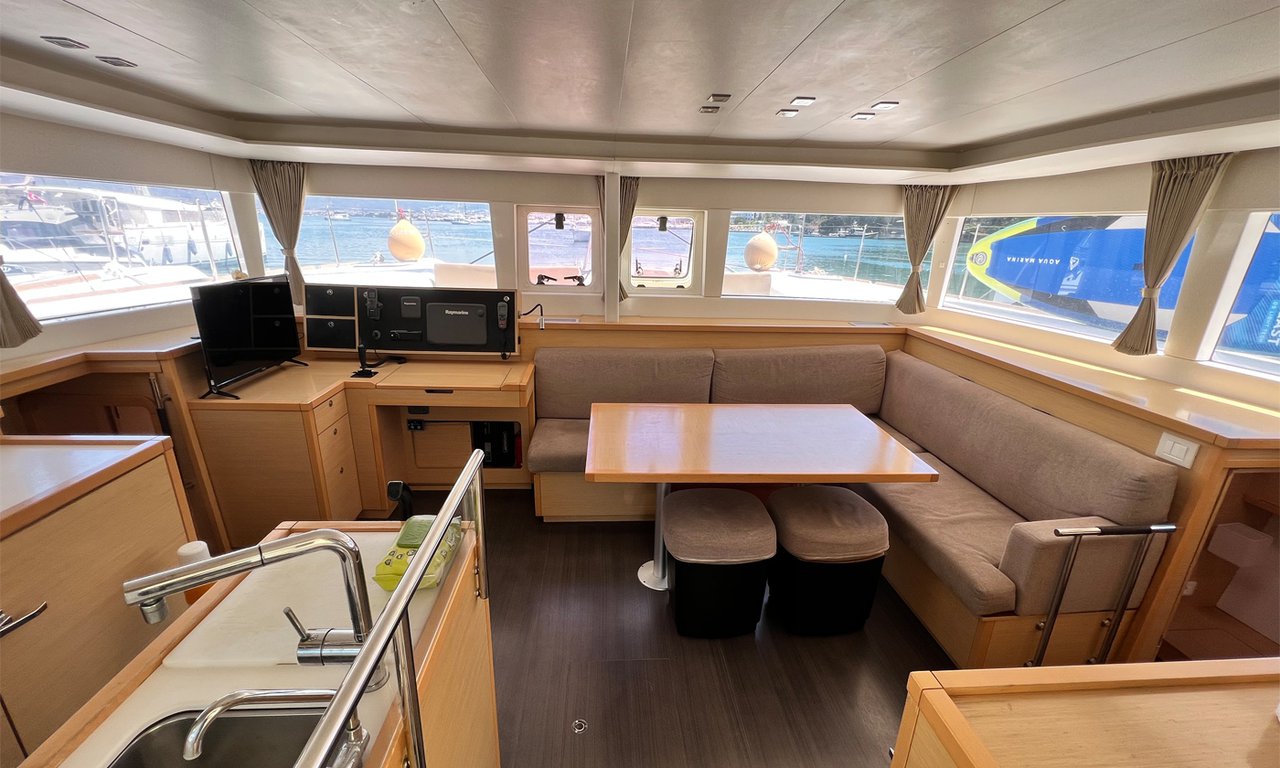| Inside | Backofen, Gasherd, Gefrierschrank, Generator, Geschirrspüler, Heizung, Inverter 12V/220V, Kaffeemaschine, Klimaanlage (ohne Landstrombedarf), Kühlschrank, Lautsprecher im Salon, Mikrowelle, Pantryausstattung, Radio mit CD, USB Steckdose, Warmwasser, Watermaker, WC (elektr.) |