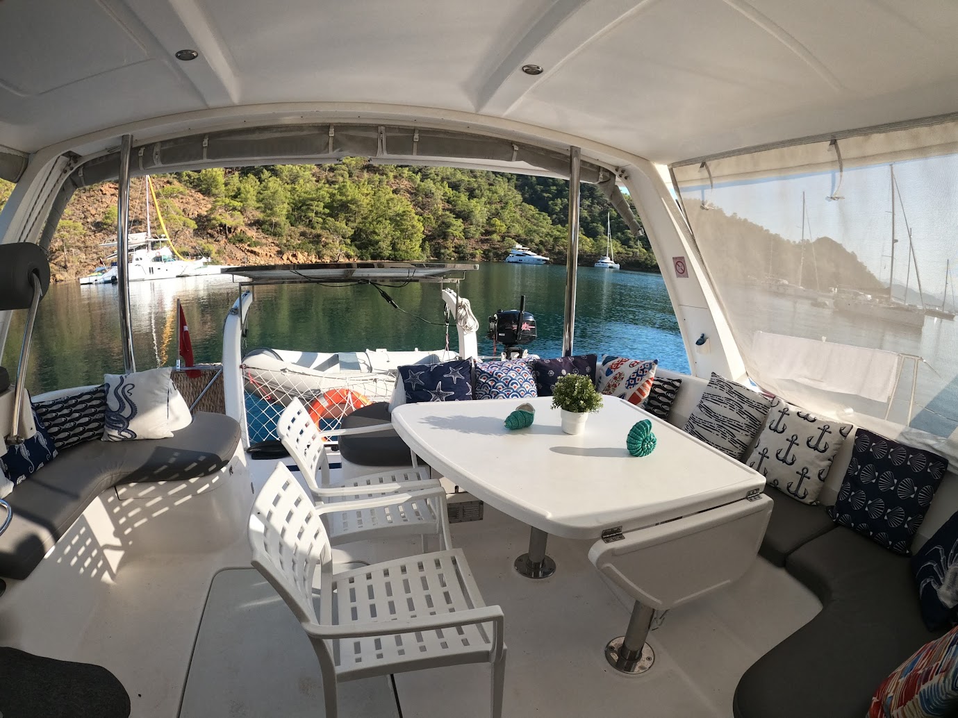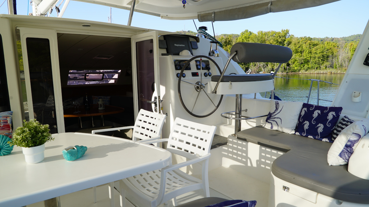 | Outside | Anker mit Kette, Badeleiter, Bootshaken, Cockpitdusche, Cockpitpolster, Cockpittisch, elektr. Ankerwinsch, Fender, Hardtop, Lifeline System, Schnorchelausrüstung, Sprayhood, Winschen |