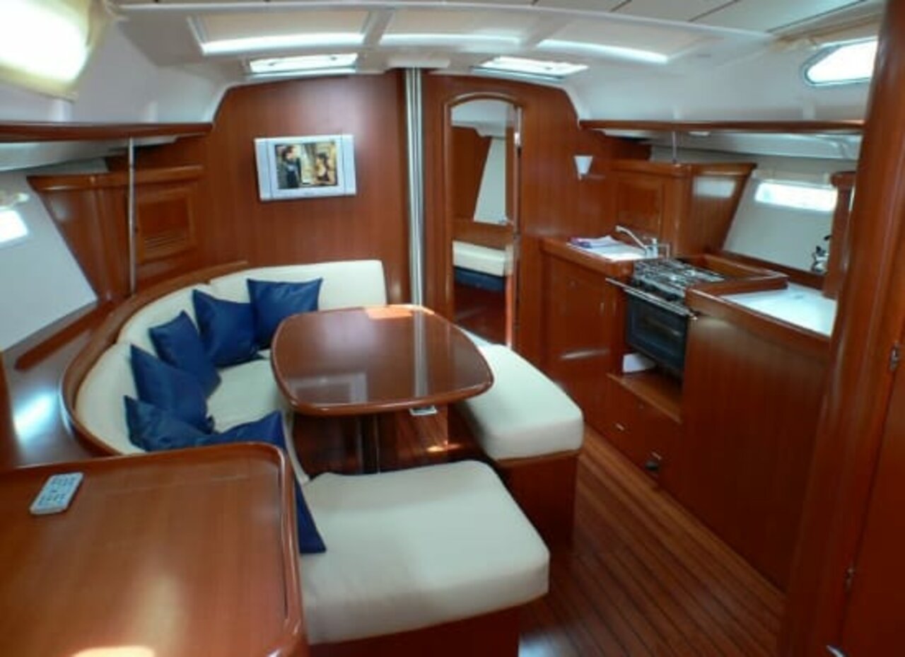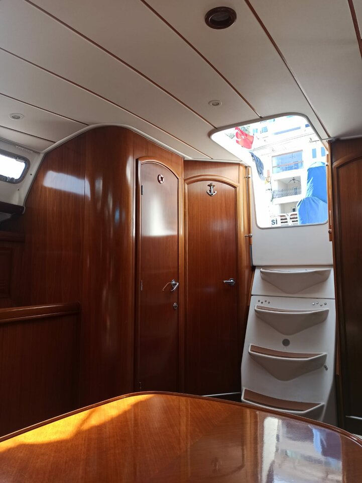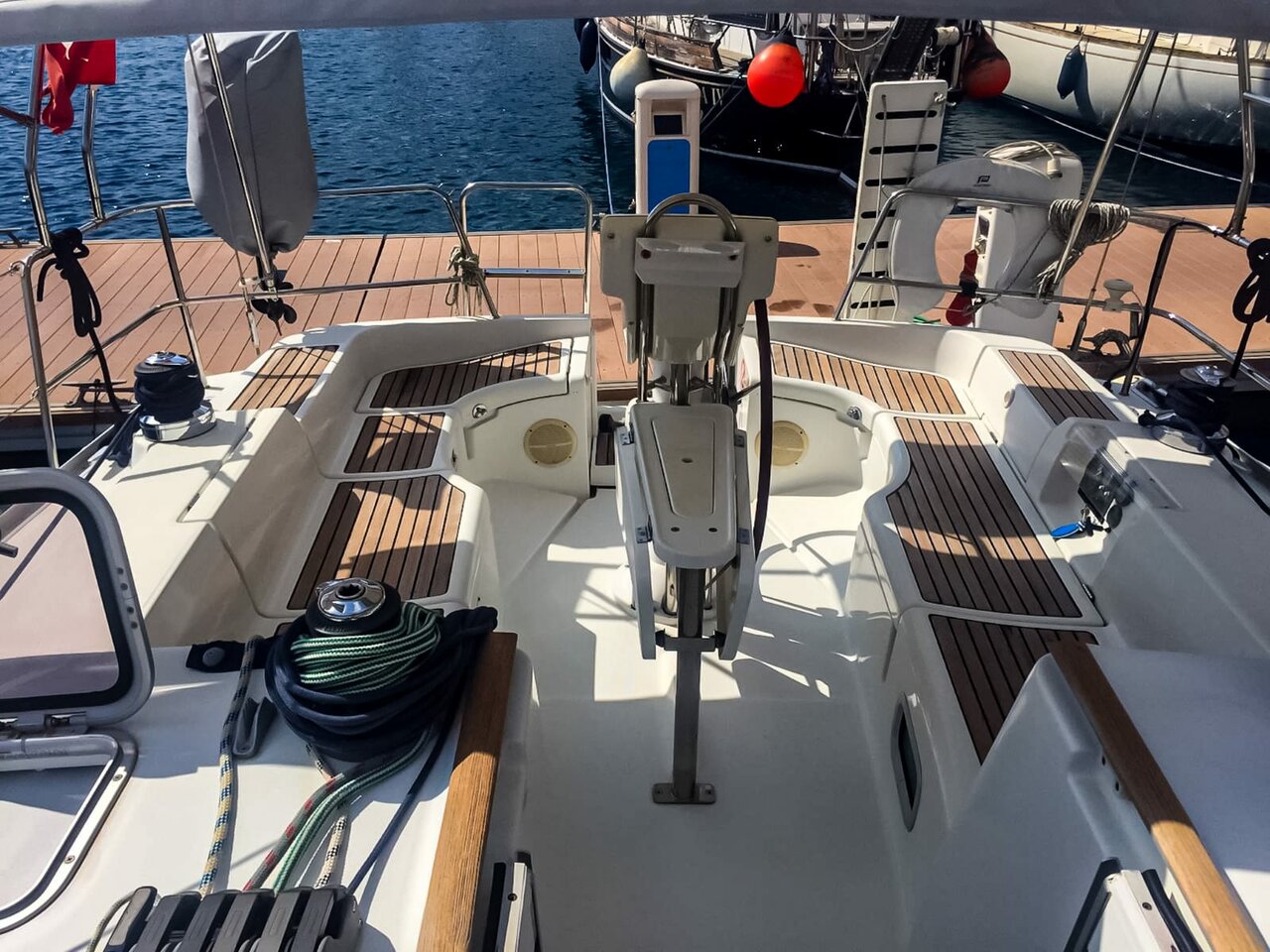 | Outside | 220 V-Landanschluss, Anker mit Kette, Badeleiter, Benzinkanister, Bootshaken, Cockpitdusche, Cockpittisch, Deckbürste, Deckpolster, Dieselkanister , Fender, Festmacherleinen, Kugelfender, Kunststoff-Eimer (Pütz), Wasserschlauch, Winschen |