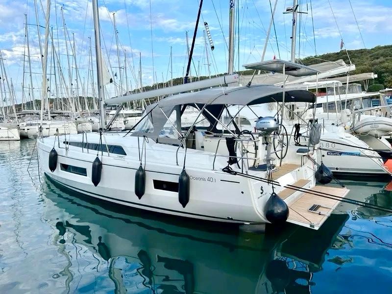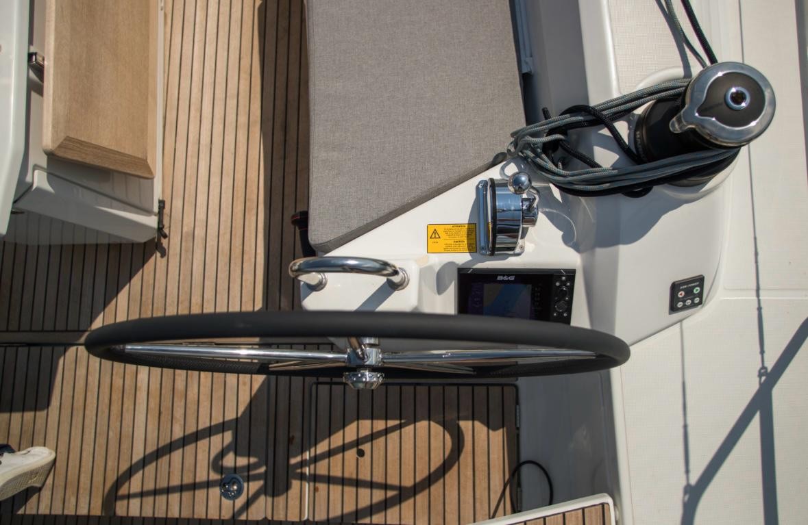 | Outside | Anker mit Kette, Ankerkettenzähler, Ankerwinsch, Badeleiter, Badeplattform, Biminitop, Bootshaken, Cockpitdusche, Cockpitlautsprecher, Cockpitpolster, Cockpittisch, Dieselkanister , elektr. Ankerwinsch, Fender, Festmacherleinen, Gangway, Kugelfender, Kunststoff-Eimer (Pütz), Solaranlage, Sprayhood, Teak auf Badeplattform, Teak im Cockpit, Wasserkanister , Wasserschlauch |