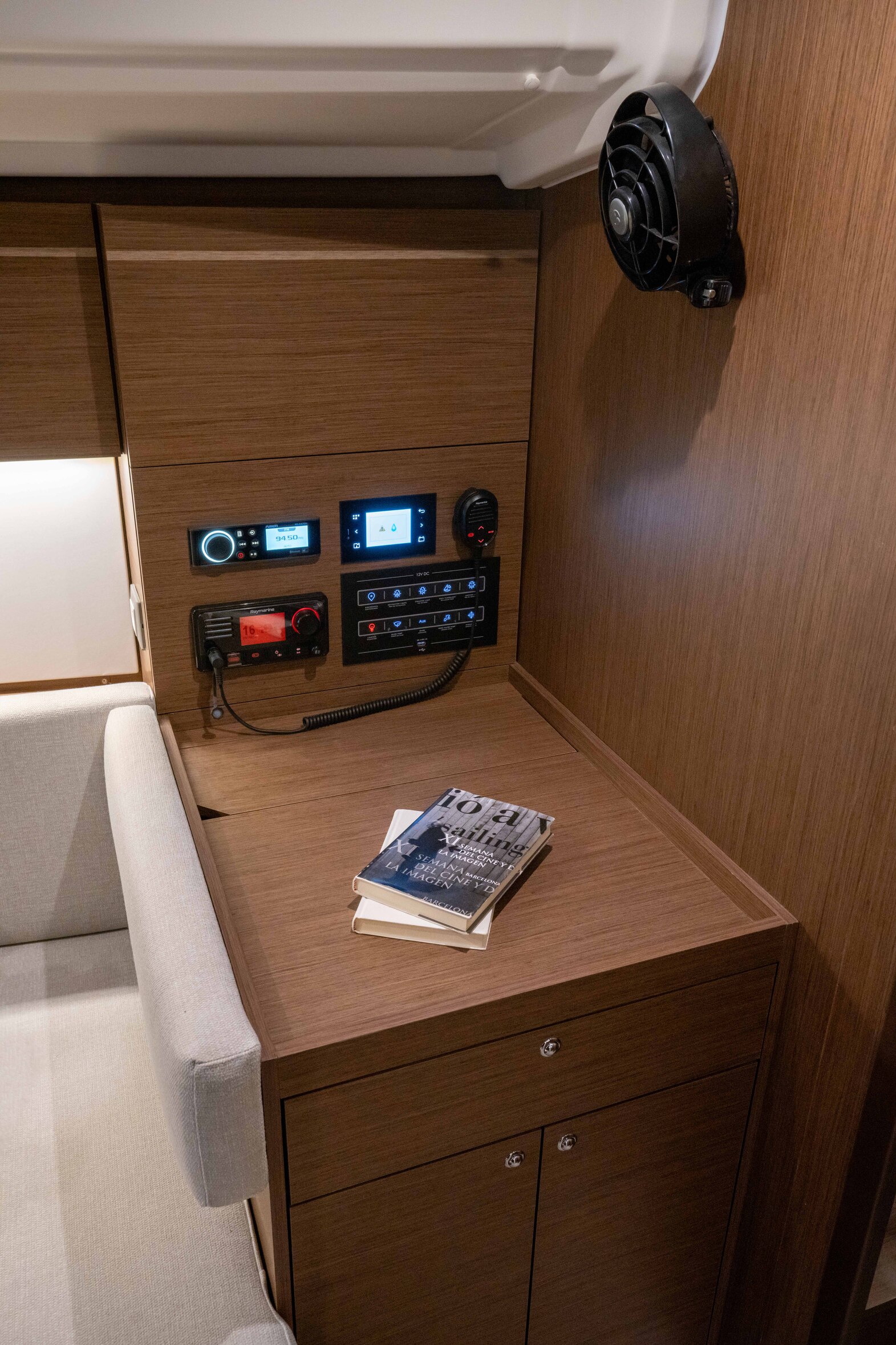 | Navigation | Barometer, Fernglas mit Peilkompass, Feuermelder, GPS mit Kartenplotter im Cockpit, Navigationsbesteck, Seekarten, Tridata (Log, Echolot, Windm.) |