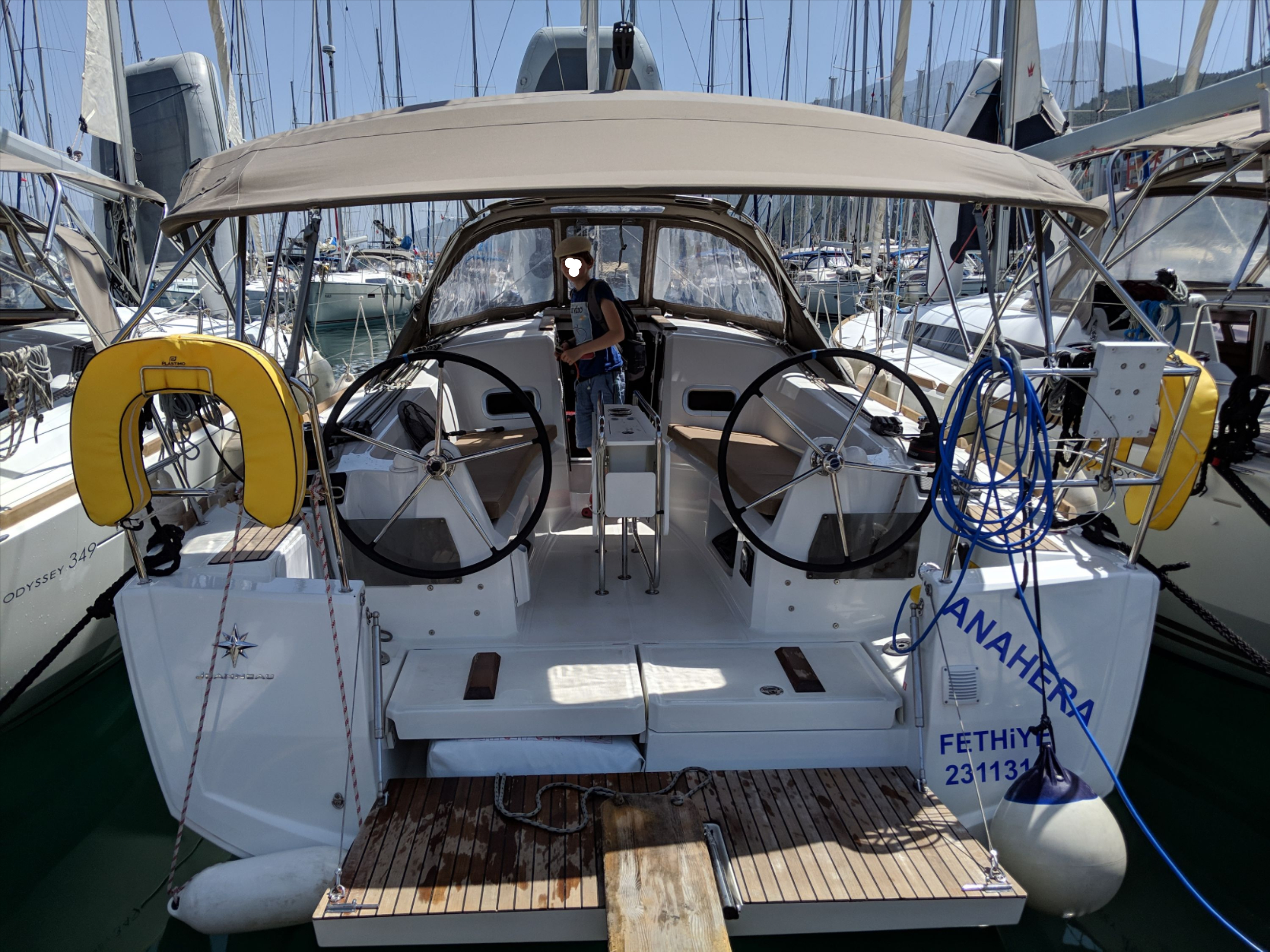 | Outside | Anker mit Kette, Badeleiter, Biminitop, Cockpitdusche warm/kalt, Cockpitlautsprecher, Cockpitpolster, Cockpittisch (klappbar), elektr. Ankerwinsch, Fender, Gangway, Solaranlage, Sonnensegel, Sprayhood |