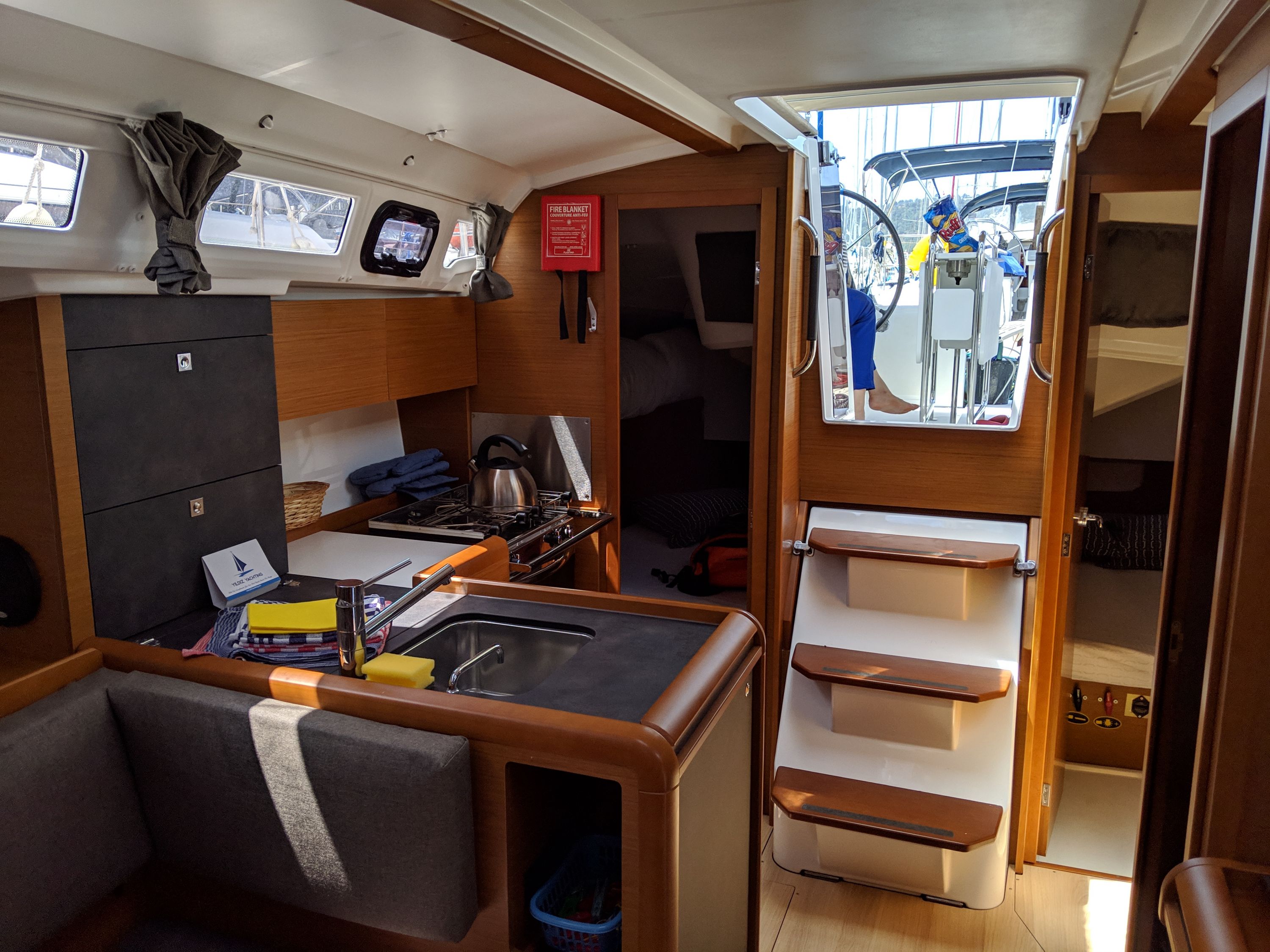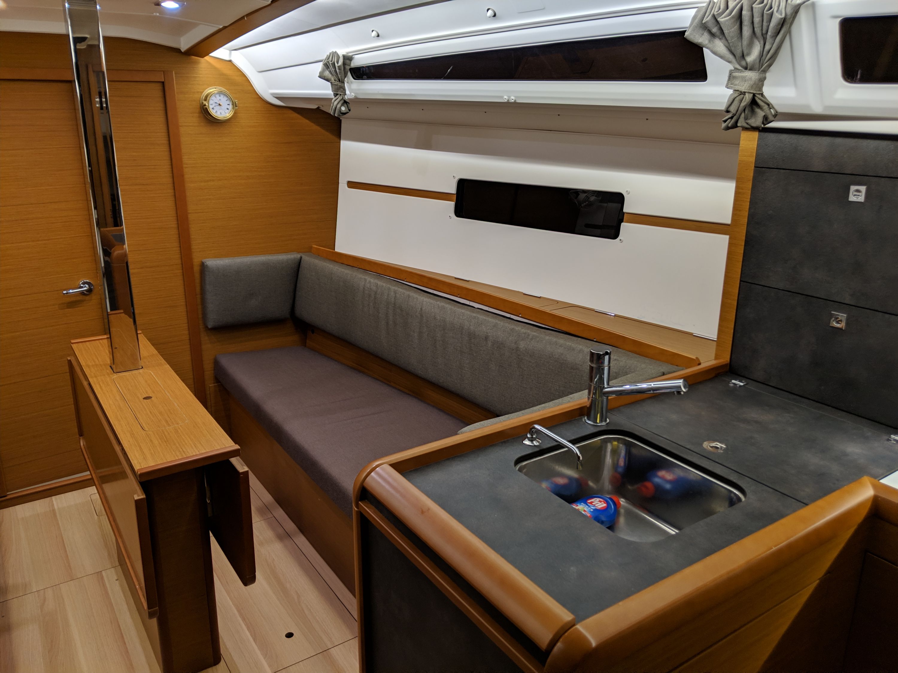 | Inside | Eisbox, Fäkalientank, Gasherd mit Backofen, Hi-Fi System, Kühlschrank, Pantryausstattung, Radio mit Bluetooth, Spülbecken, USB Steckdose, Ventilatoren in Kabinen, Warmwasser |