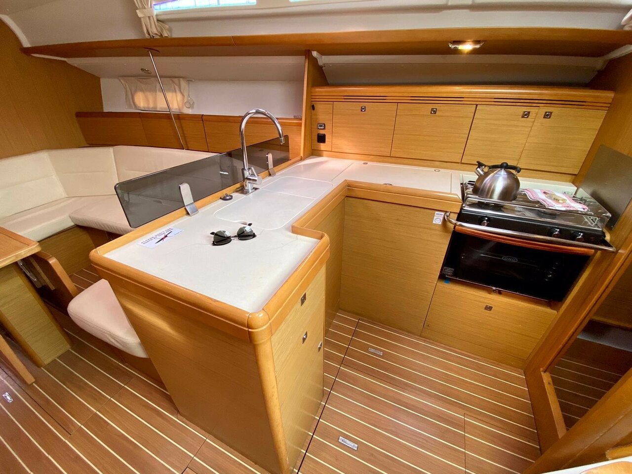 | Outside | Badeleiter, Biminitop, Cockpitdusche, Cockpitlautsprecher, Cockpitpolster, Cockpittisch, elektr. Ankerwinsch, elektr. Winsch, Selbstholende Winschen, Sprayhood |
