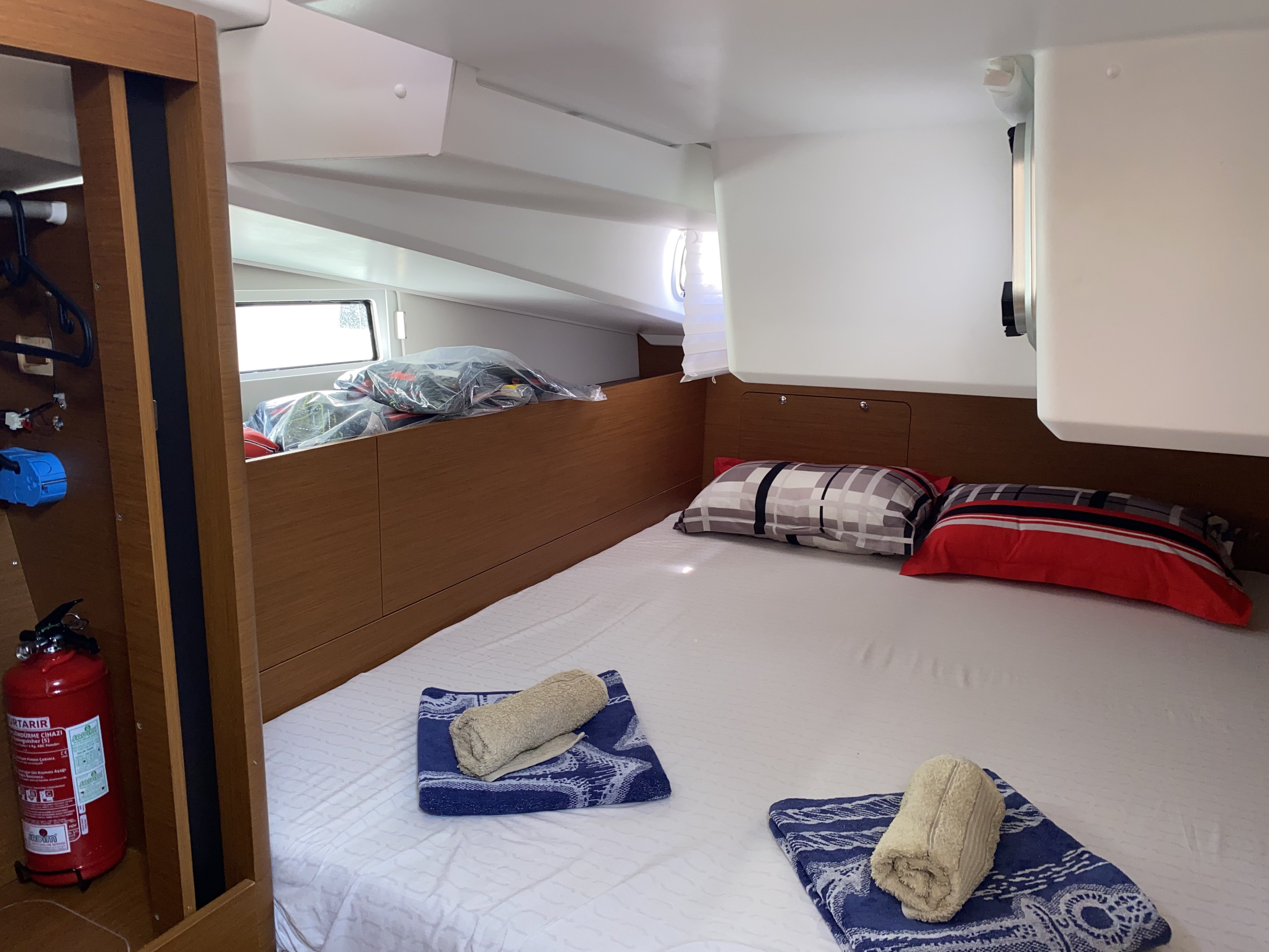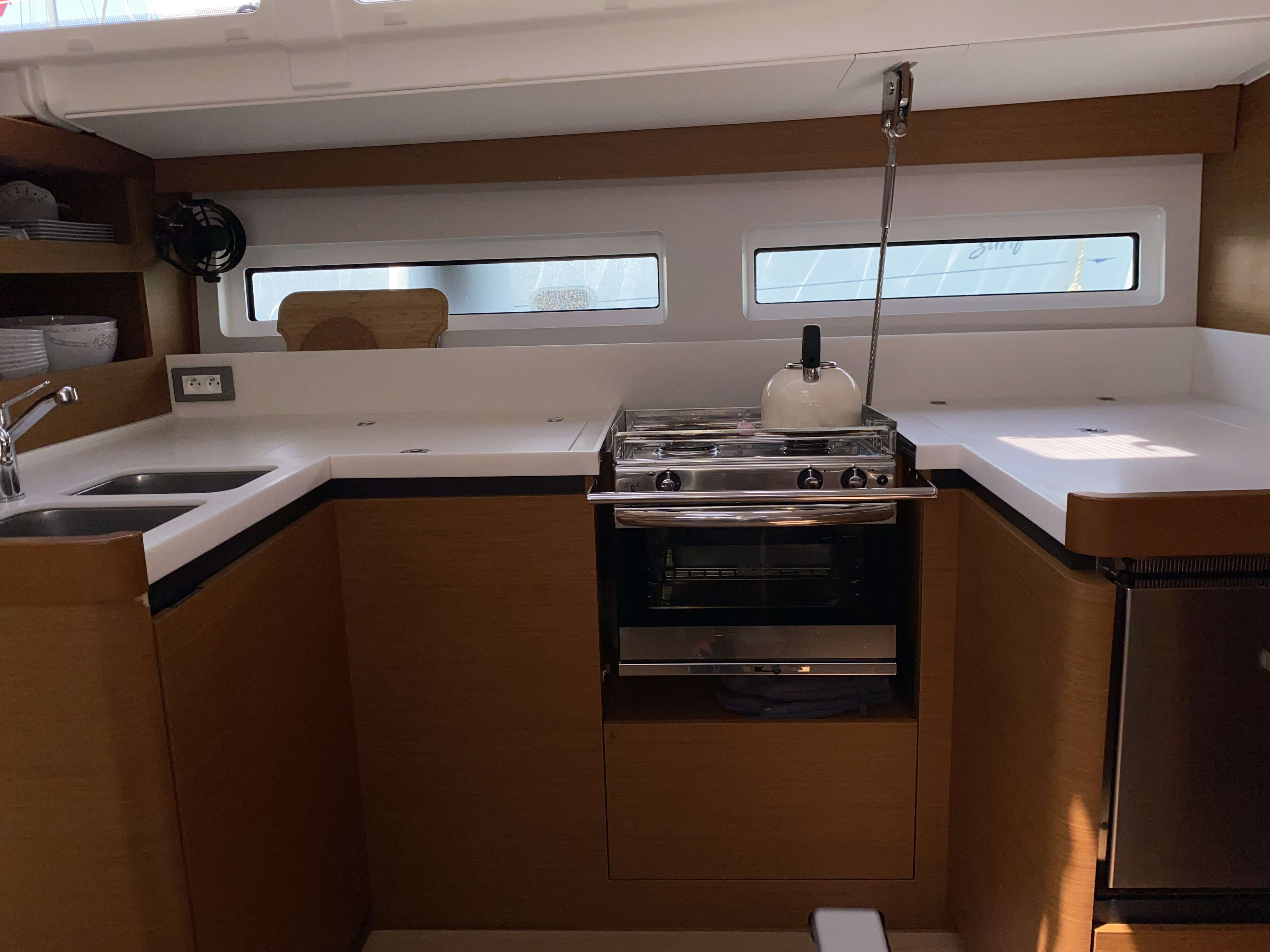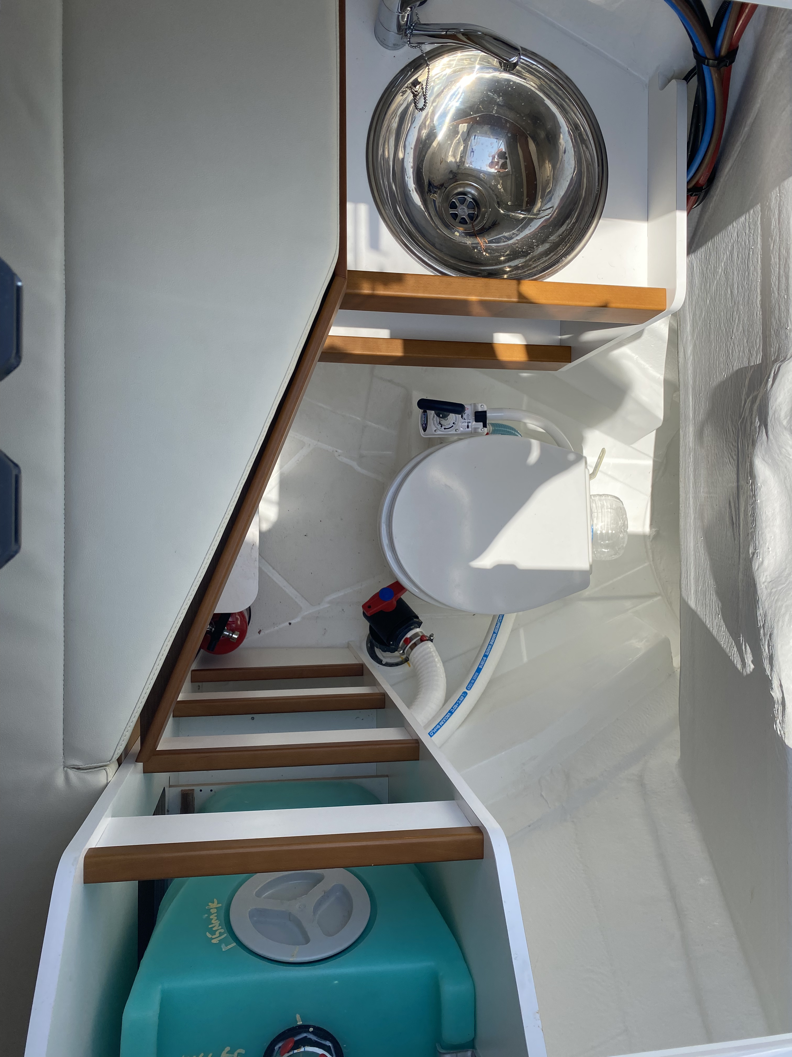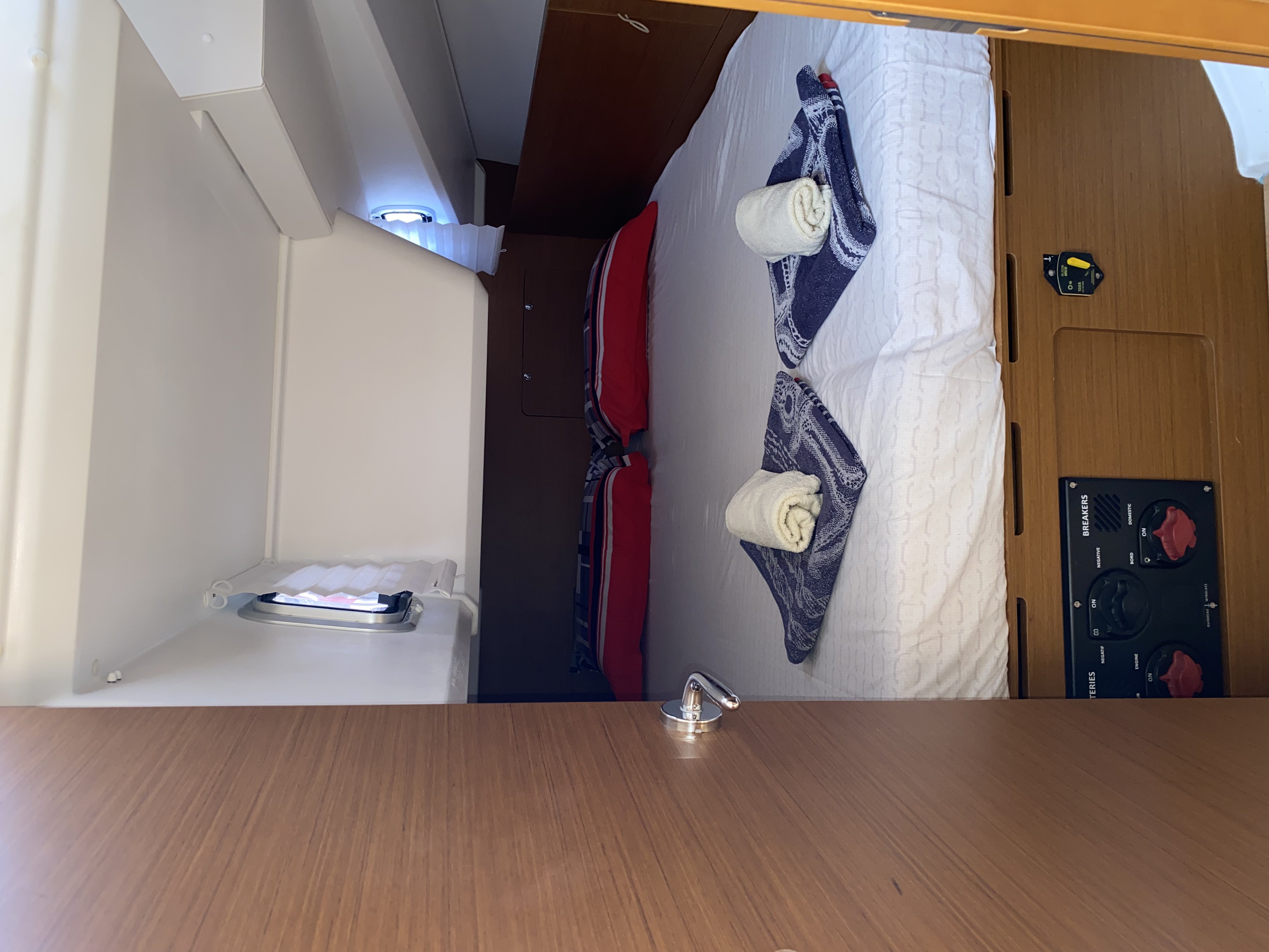 | Inside | Eisbox, Fäkalientank, FUSION Sound System, Gasherd mit Backofen, Kühlschrank, Lautsprecher in Salon und Cockpit, Pantryausstattung, Radio mit Bluetooth, Spülbecken, Ventilatoren in Kabinen, Warmwasser |
