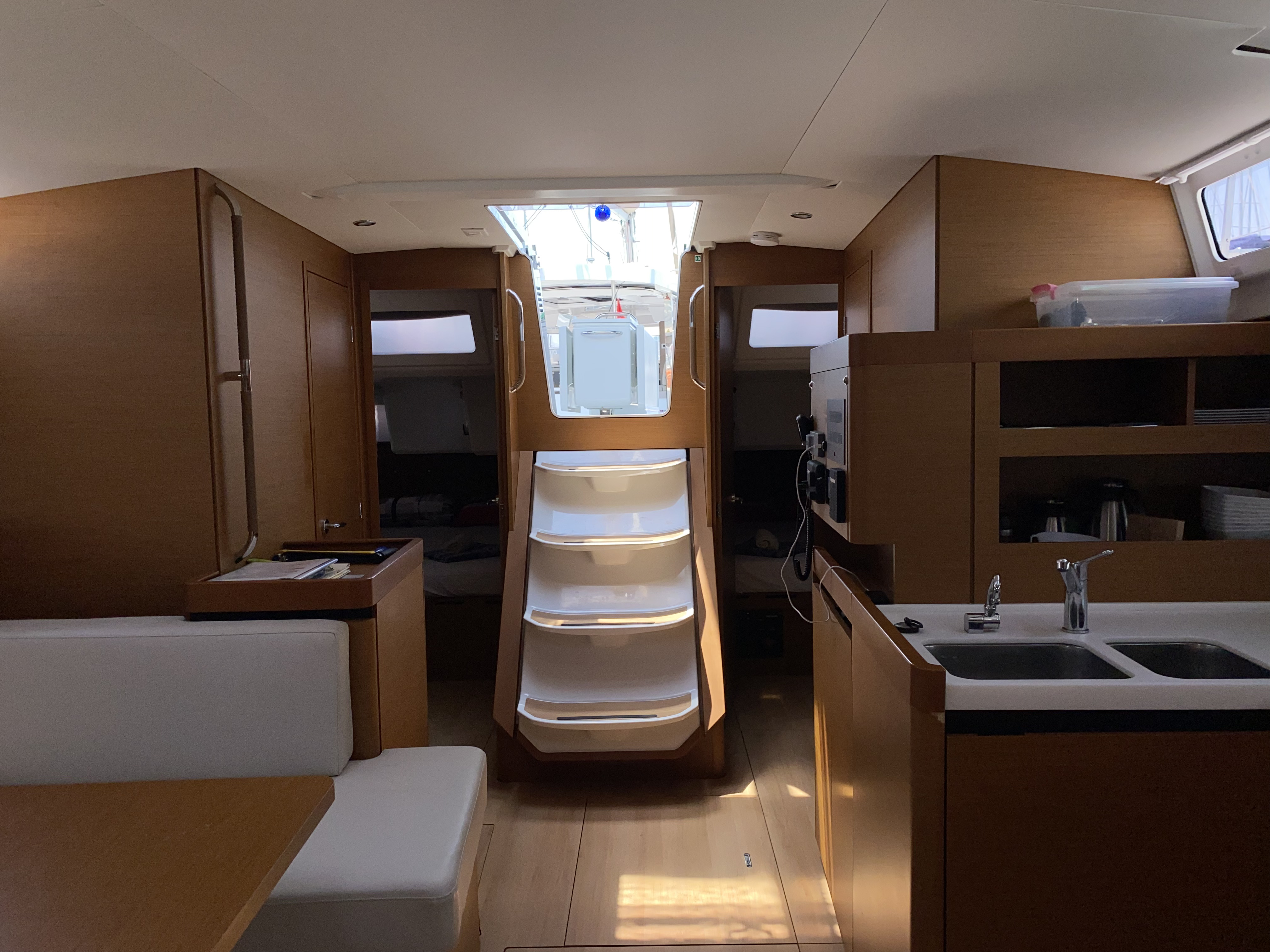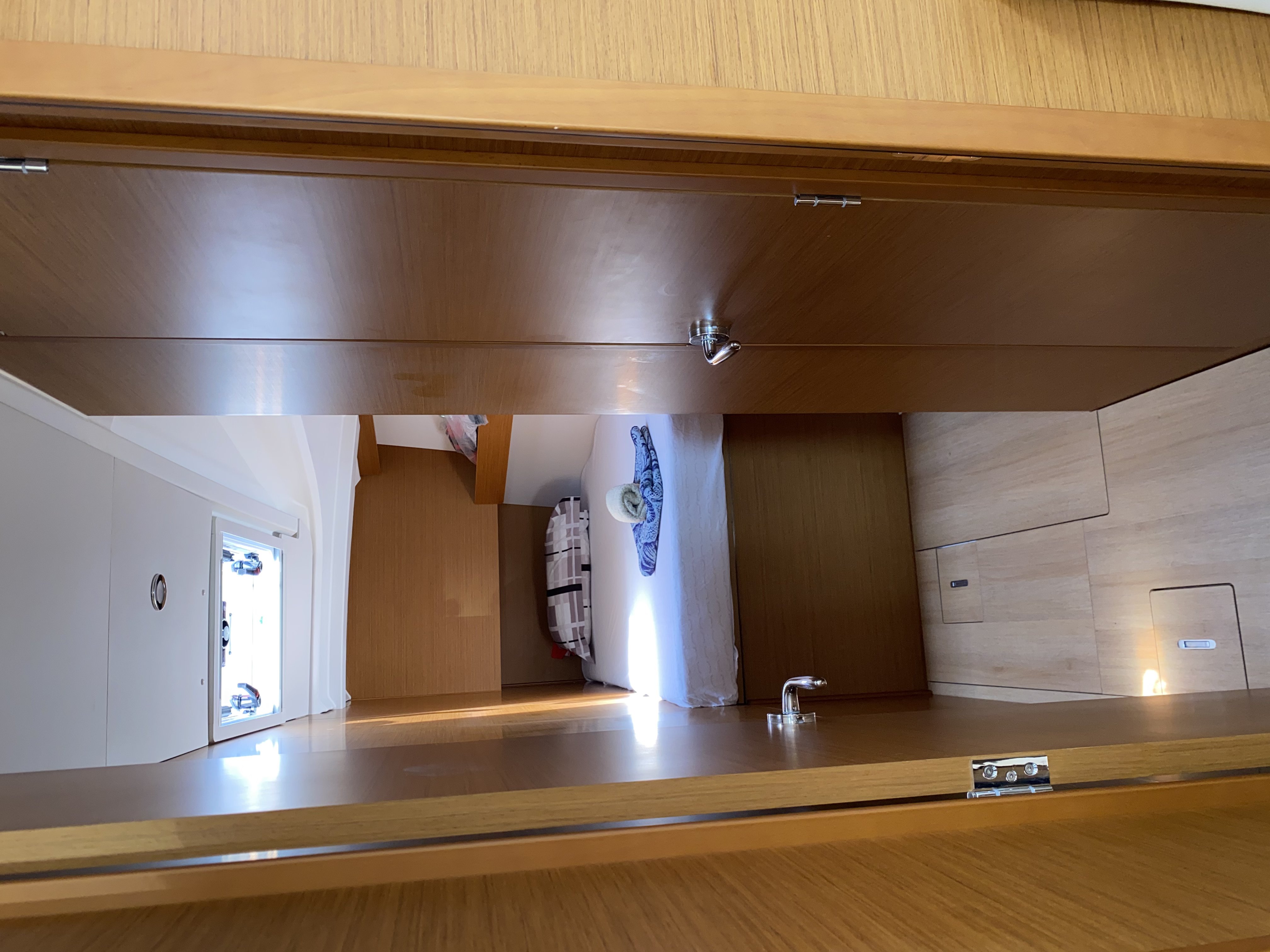 | Outside | Anker mit Kette, Badeleiter, Biminitop, Cockpitdusche warm/kalt, Cockpittisch, elektr. Ankerwinsch, Gangway, Solaranlage, Sonnensegel, Sprayhood |