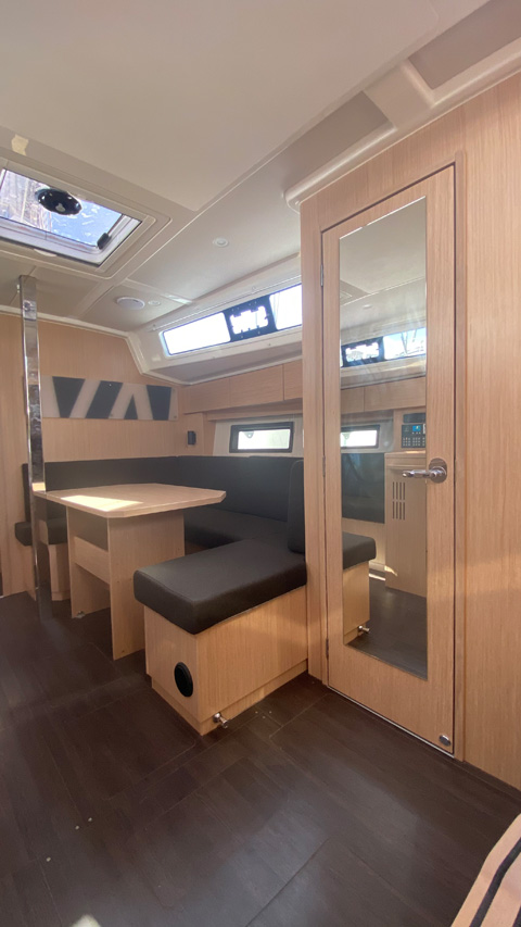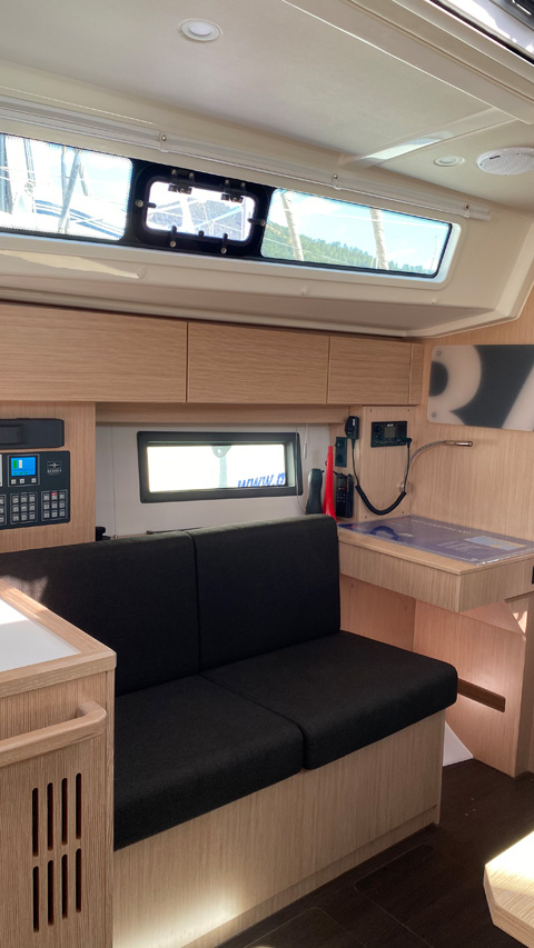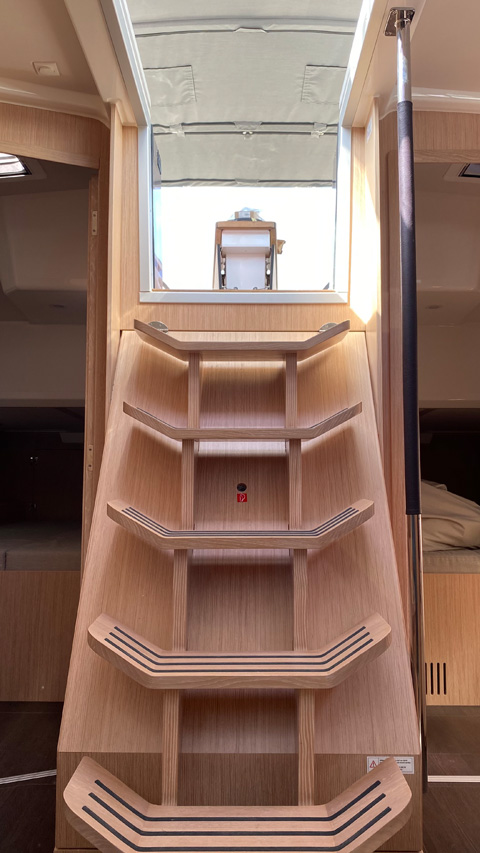 | Navigation | Barometer, Fernglas mit Peilkompass, GPS mit Kartenplotter im Cockpit, Hafenhandbücher, Navigationsbesteck, Seekarten, Tridata (Log, Echolot, Windm.) |