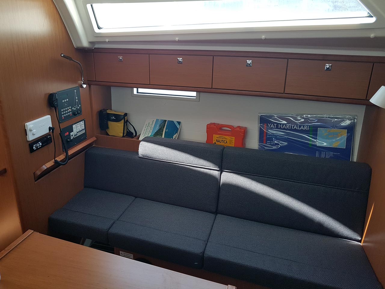 | Navigation | Barometer, Fernglas mit Peilkompass, GPS mit Kartenplotter im Cockpit, Hafenhandbücher, Navigationsbesteck, Seekarten, Tridata (Log, Echolot, Windm.) |