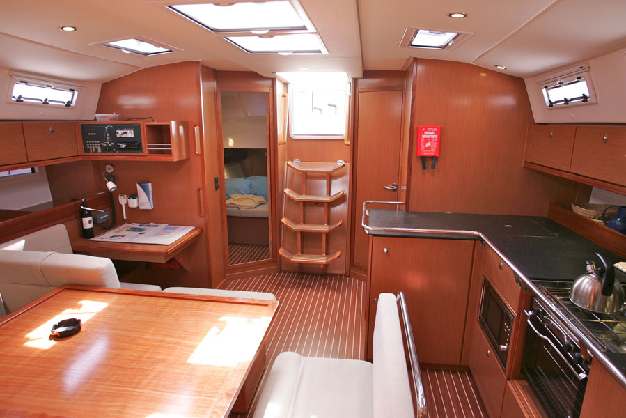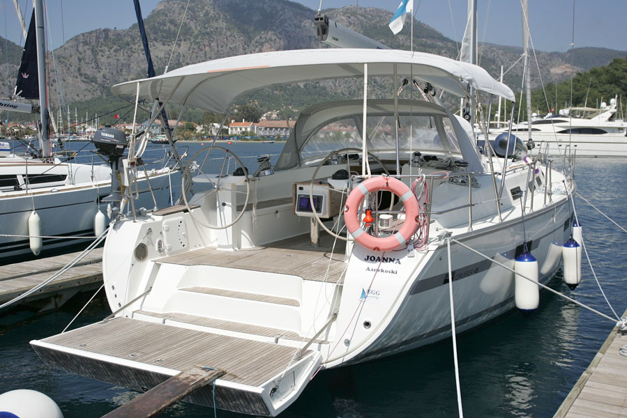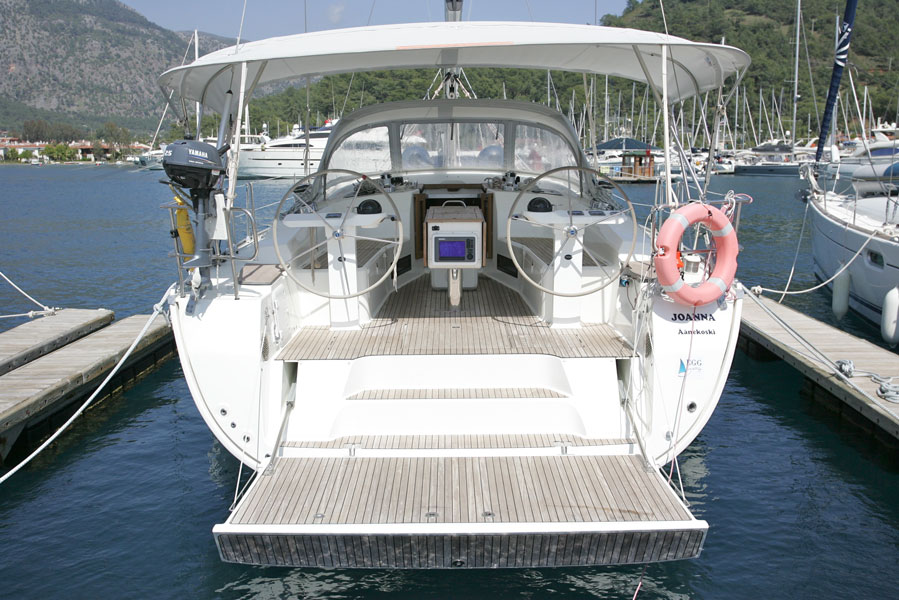 Anker mit Kette, Badeleiter, Badeplattform (hydr.), Benzinkanister, Biminitop, Bootshaken, Cockpitdusche, Cockpitlautsprecher, Cockpitleuchte, Cockpitpolster, Cockpittisch, Deckbürste, Dieselkanister , elektr. Ankerwinsch, Fender, Festmacherleinen, Gangway, Kugelfender, Kunststoff-Eimer (Pütz), Schnorchelausrüstung, Solaranlage, Sonnensegel, Sprayhood, Teak im Cockpit, Wantenschneider, Wasserkanister , Wasserschlauch, Winschen |