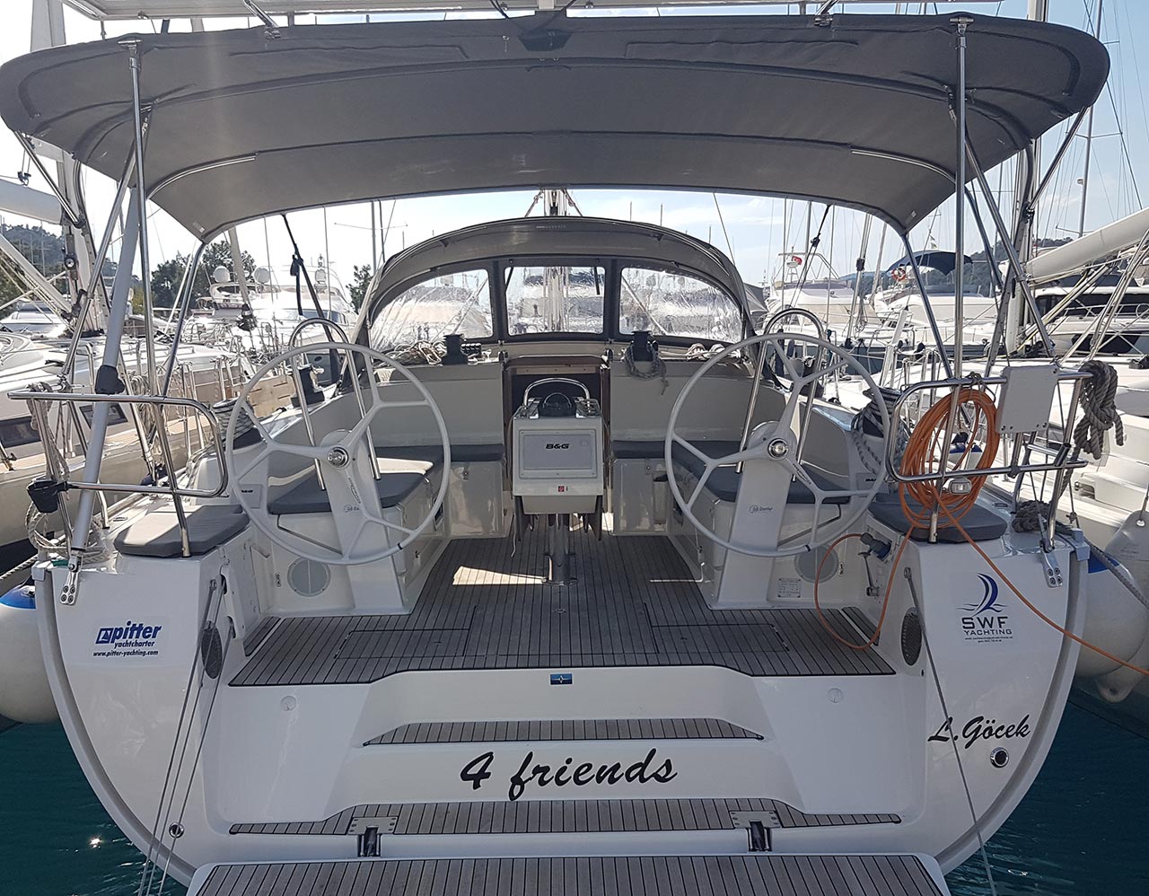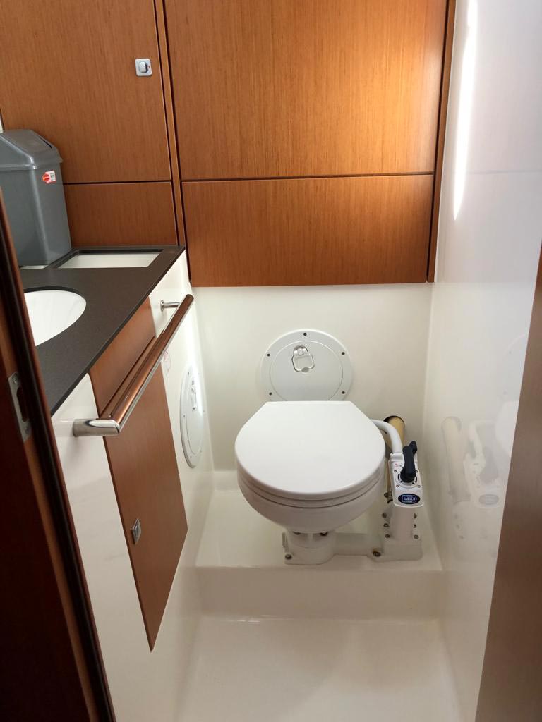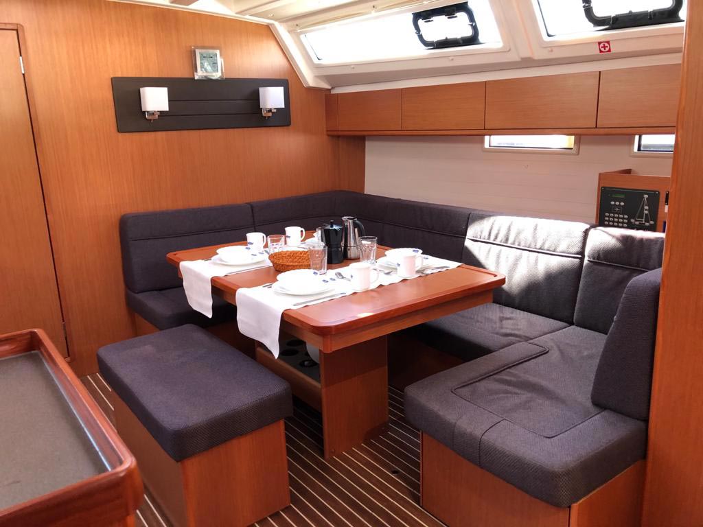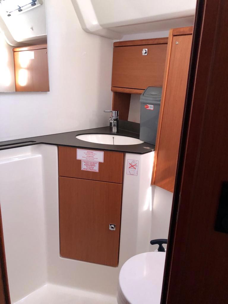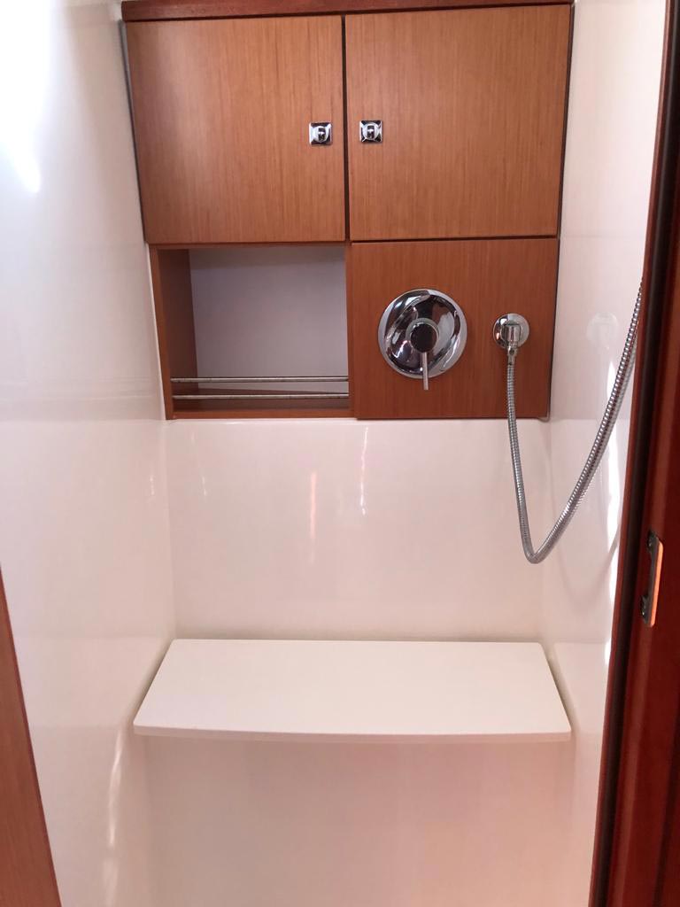 Outside 220 V-Landanschluss, Anker mit Kette, Ankerwinsch, Biminitop, Bootshaken, Cockpitdusche, Cockpitlautsprecher, Cockpitpolster, Cockpittisch, Dieselkanister , elektr. Ankerwinsch, Fender, Festmacherleinen, Gangway, Kugelfender, Kunststoff-Eimer (Pütz), Solaranlage, Sprayhood, Teak im Cockpit, Wantenschneider, Wasserkanister , Wasserschlauch