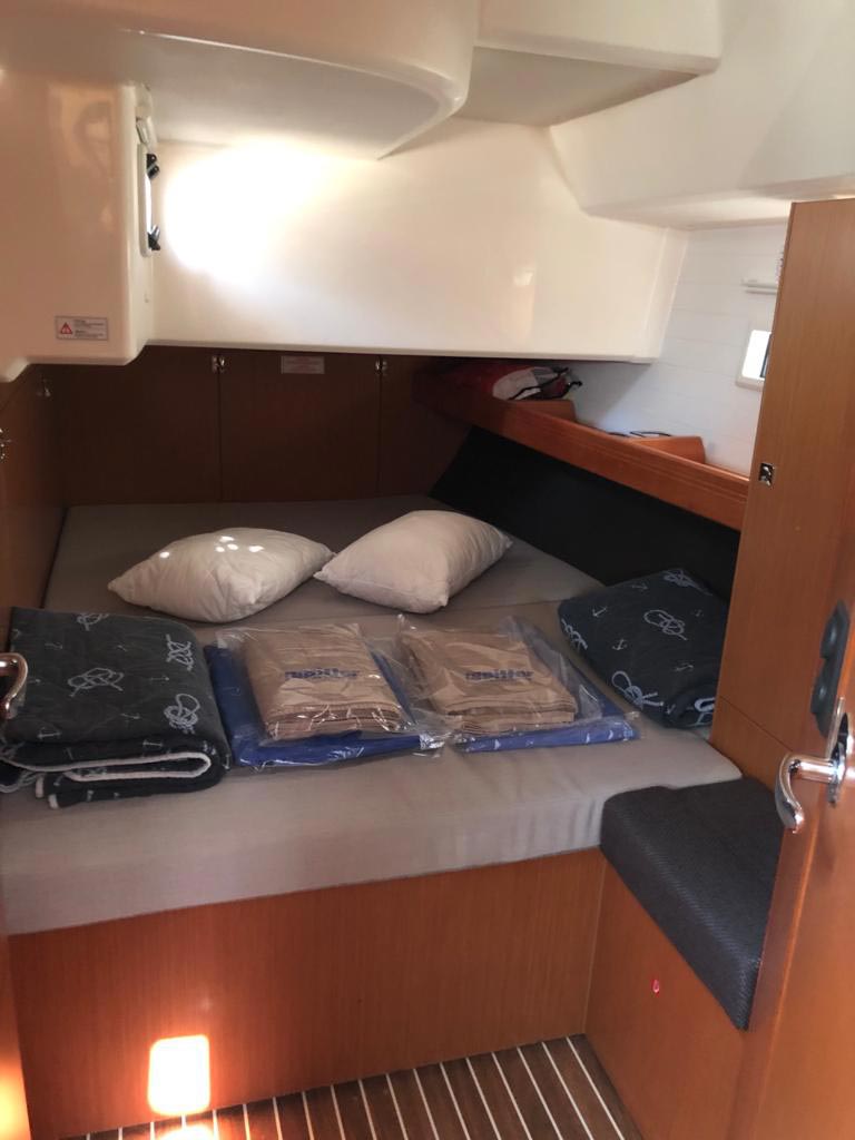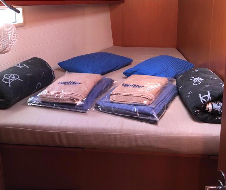 Safety Automatikwesten, Autopilot, Blitzboje, Bootsmannstuhl, Bordapotheke, Bordwerkzeug, Bugstrahlruder, Feuerlöscher, Lifebelts, Motor-Ersatzteile, Nebelhorn, Notsignale, Radarreflektor, Reparaturset für Beiboot, Rettungsinsel, Suchscheinwerfer, Taschenlampe, UKW-Funk mit AIS, Zweitanker