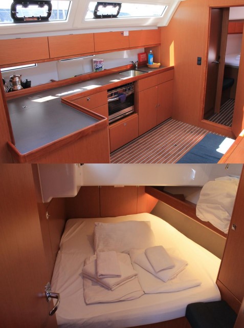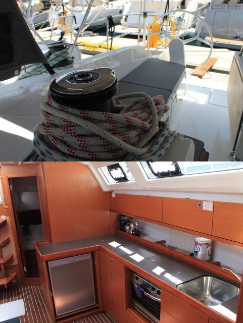 | Inside | 2. Kühlschrank, Borduhr, Inverter 12V/220V, Kühlschrank, Ladegerät, Luftpumpe für Beiboot, Pantryausstattung, Radio, USB Steckdose, Warmwasser |