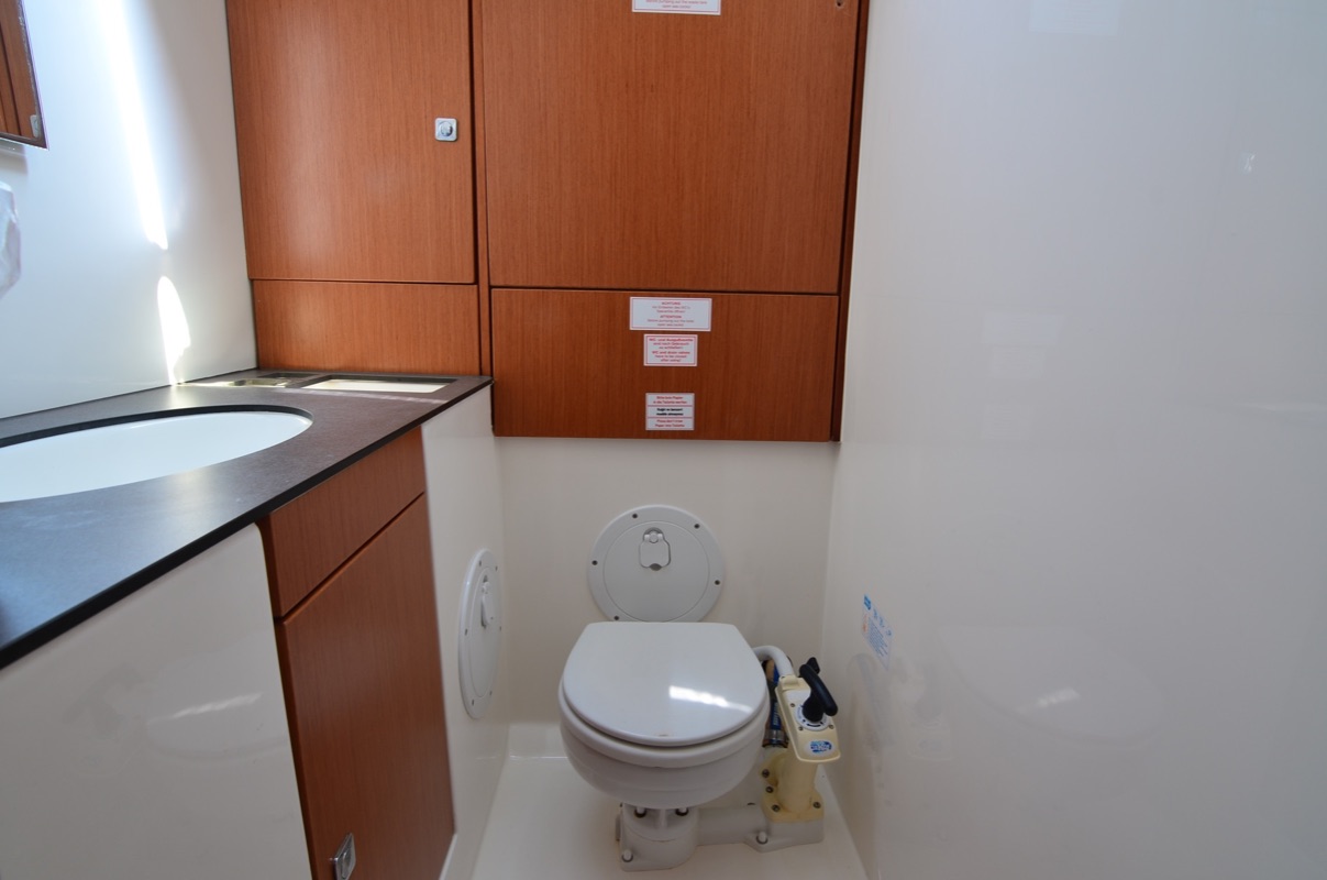 | Navigation | Echolot, elektr. Seekarten, Fernglas, GPS mit Kartenplotter im Cockpit, Hafenhandbücher, Handpeilkompass, Navigationsbesteck |