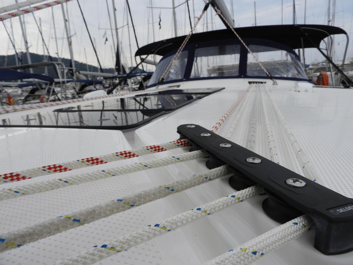 | Safety | Automatikwesten, Autopilot, Bordapotheke, Bugstrahlruder, elektr. Bilgepumpe, Feuerlöscher, Notpinne, Notsignale, Radarreflektor, Rettungsinsel, Sicherheitsausrüstung, UKW-Funk m. DSC |