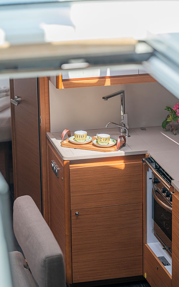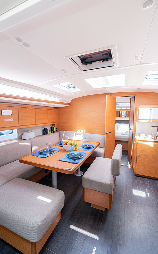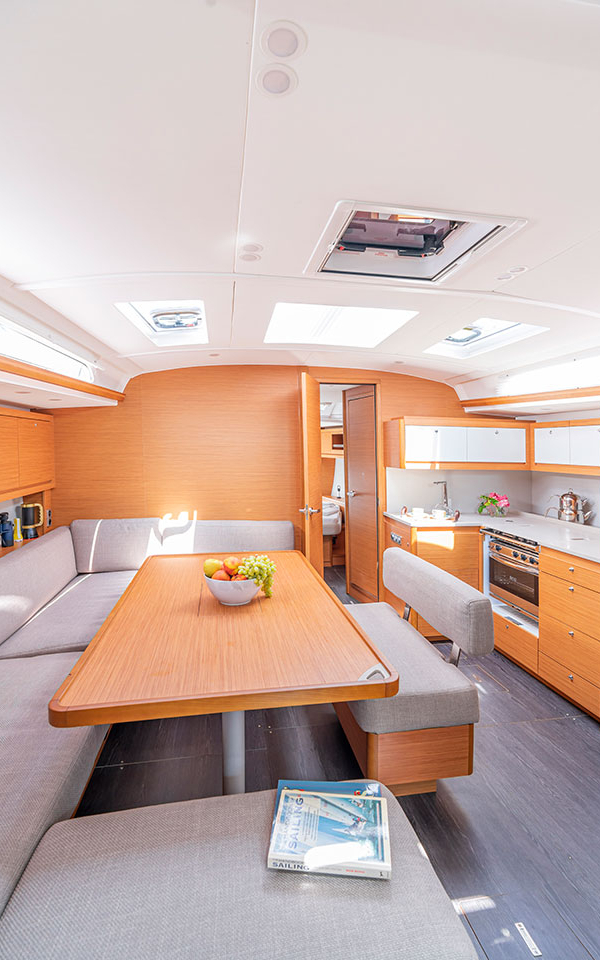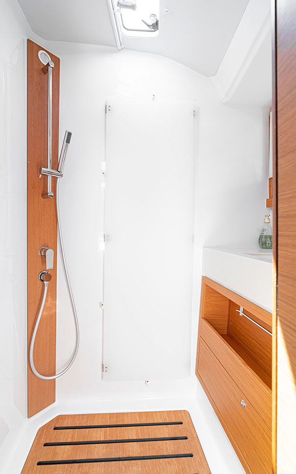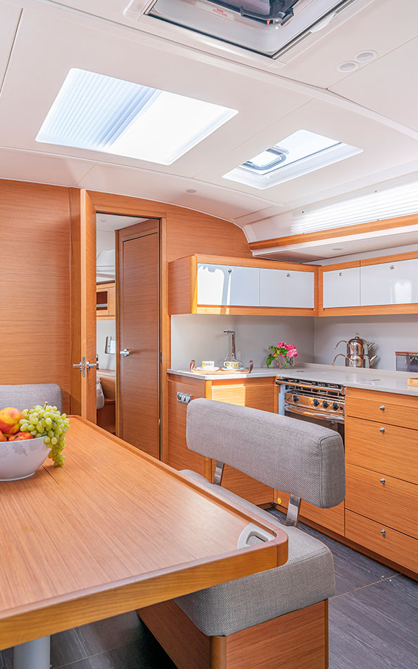 | Safety | Autopilot, Bootsmannstuhl, Bordapotheke, Bordwerkzeug, Bugstrahlruder, Feuerlöscher, Flaggen, Handbilgepumpe, Kinderschwimmwesten, Leuchtboje, Löschdecke, Nebelhorn, Notsignale, Reparaturset für Beiboot, Rettungsinsel, Rettungskragen, Rettungswesten, Schwimmleine, Suchscheinwerfer, Taschenlampe, UKW-Funk, Zweitanker |