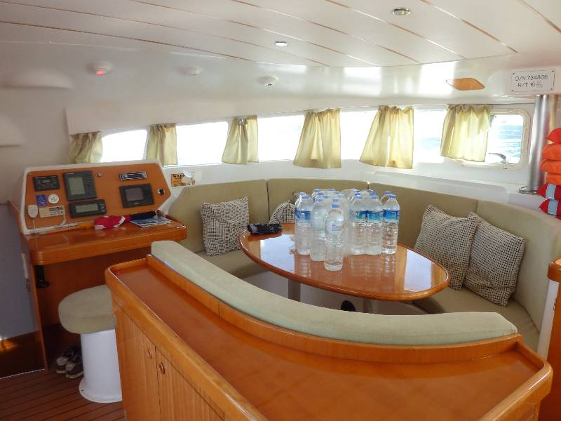 220 V-Landanschluss, Anker mit Kette, Biminitop, Bootshaken, Cockpitdusche, Cockpitlautsprecher, Cockpitpolster, Cockpittisch, Davits, Delta-Anker, elektr. Ankerwinsch, Fender, Festmacherleinen, Gangway, Kugelfender, Kunststoff-Eimer (Pütz), Sprayhood, Wasserschlauch, Windex |