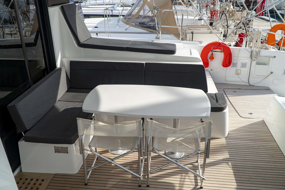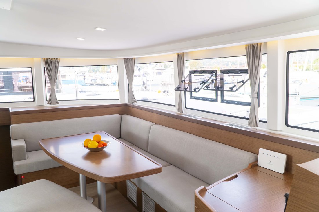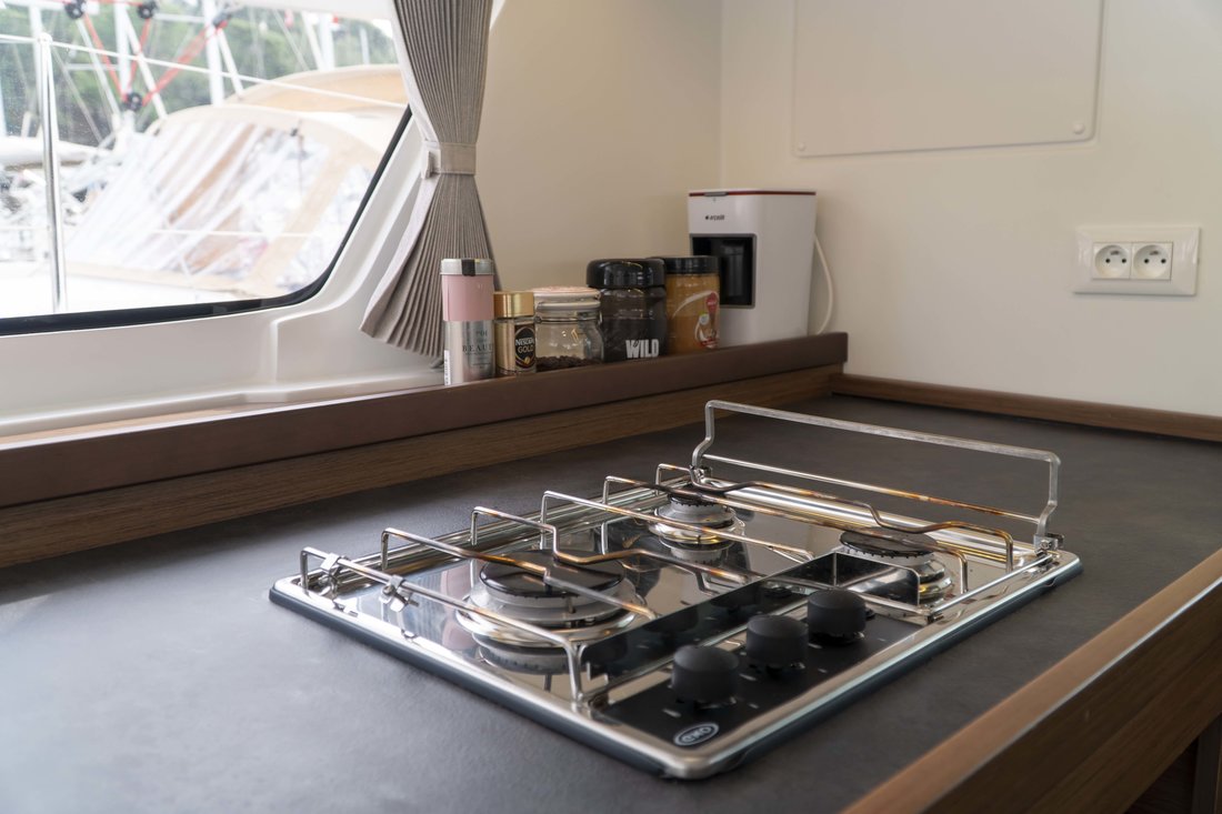 | Inside | Besen und Kehrblech, Borduhr, FUSION Sound System, Generator, Inverter 12V/220V, Klimaanlage (ohne Landstrombedarf), Klobürste, Kühlschrank, Landstromkabel, Pantryausstattung, Warmwasser, Watermaker, WC (elektr.) |