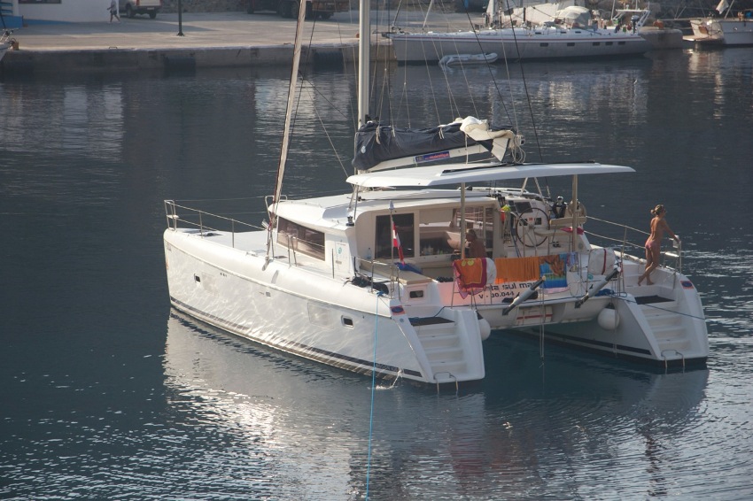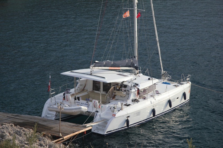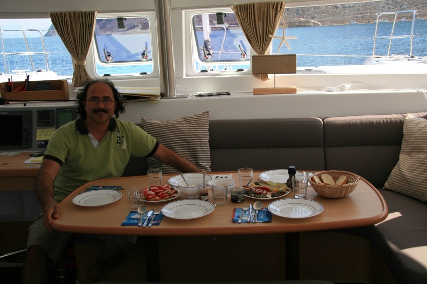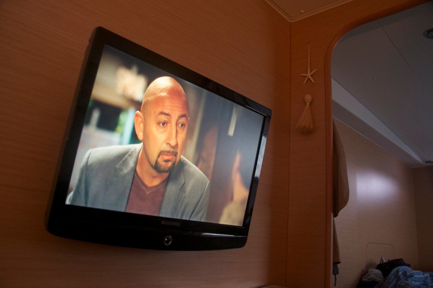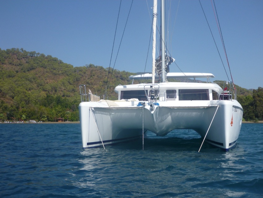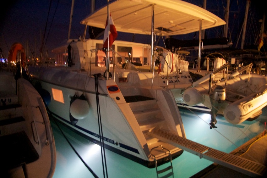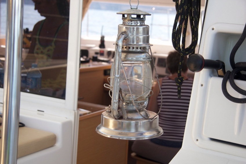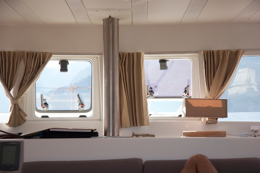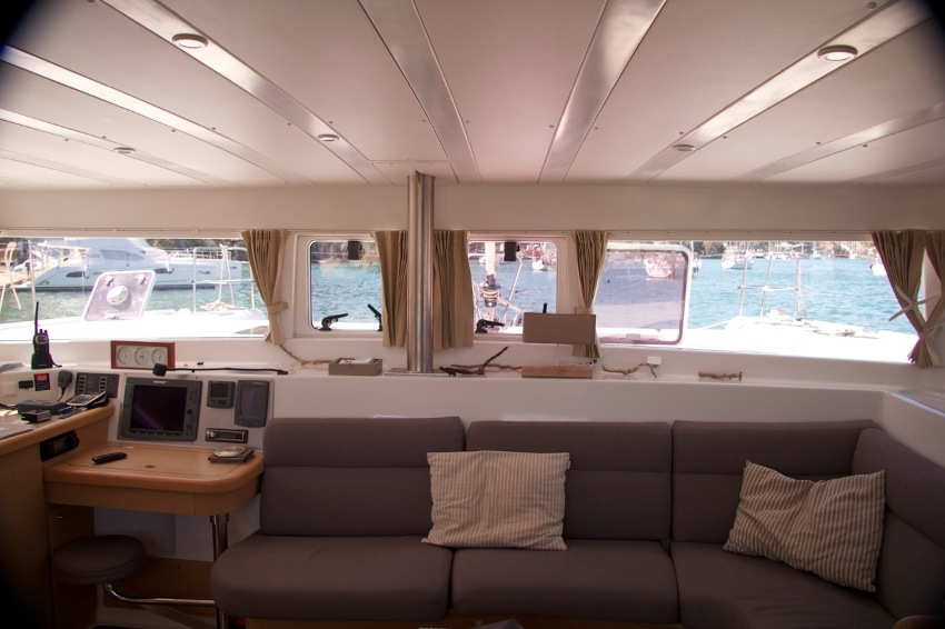 Borduhr, DVD-Player, Eiswürfelmaschine, Inverter 12V/220V, Kühlschrank, Ladegerät, LED-Innenleuchten, Luftpumpe für Beiboot, Nespresso-Maschine, Pantryausstattung, Radio, Salontisch absenkbar, TV, Warmwasser |