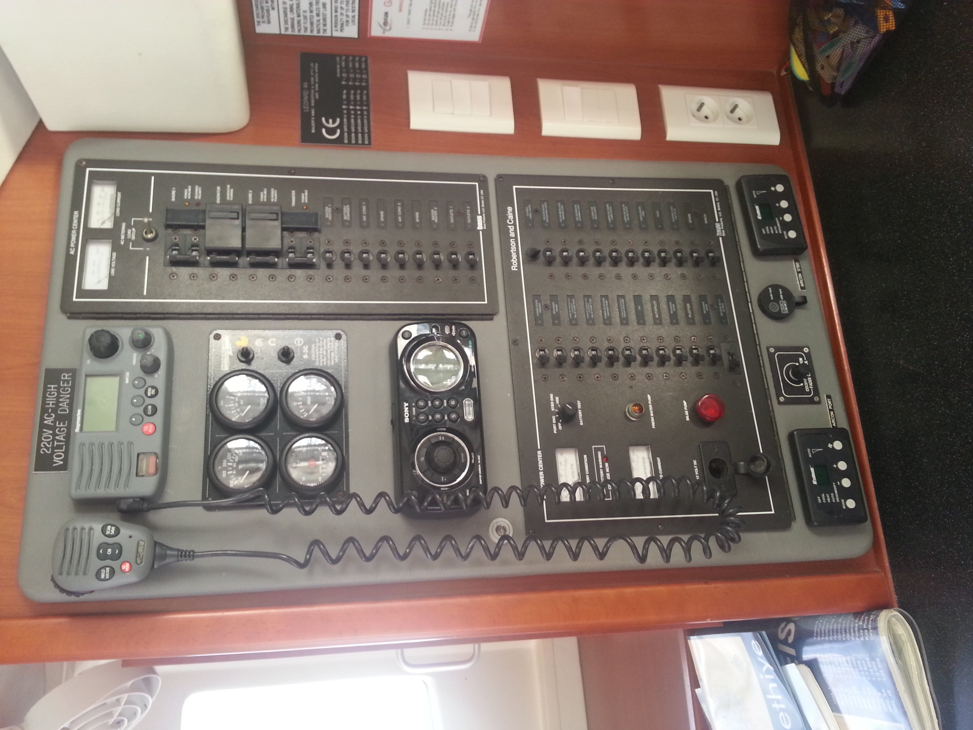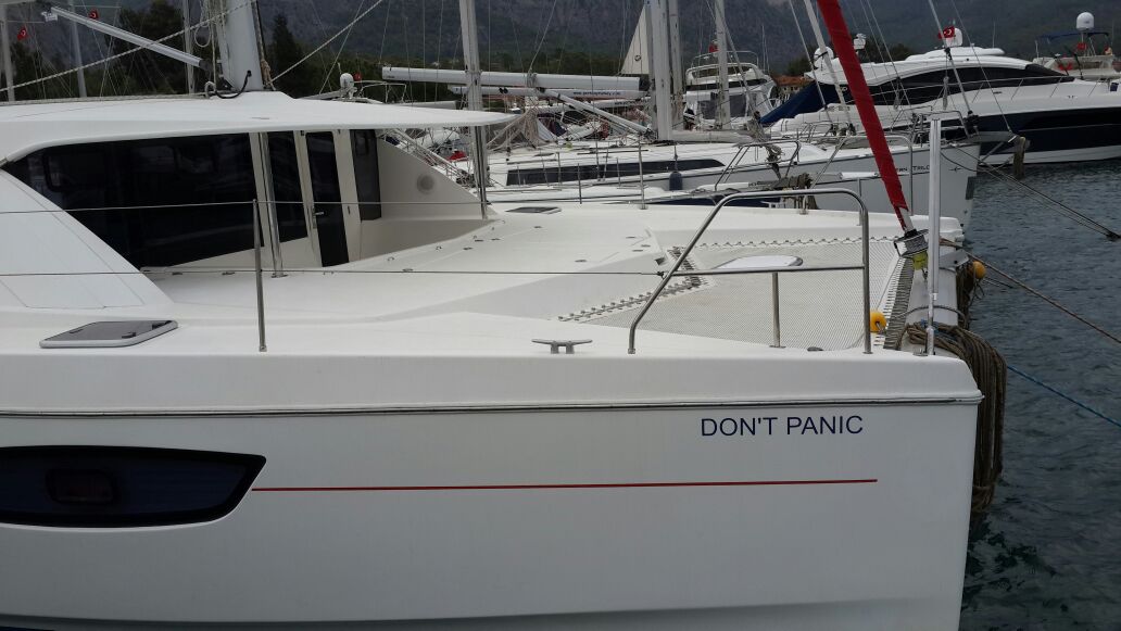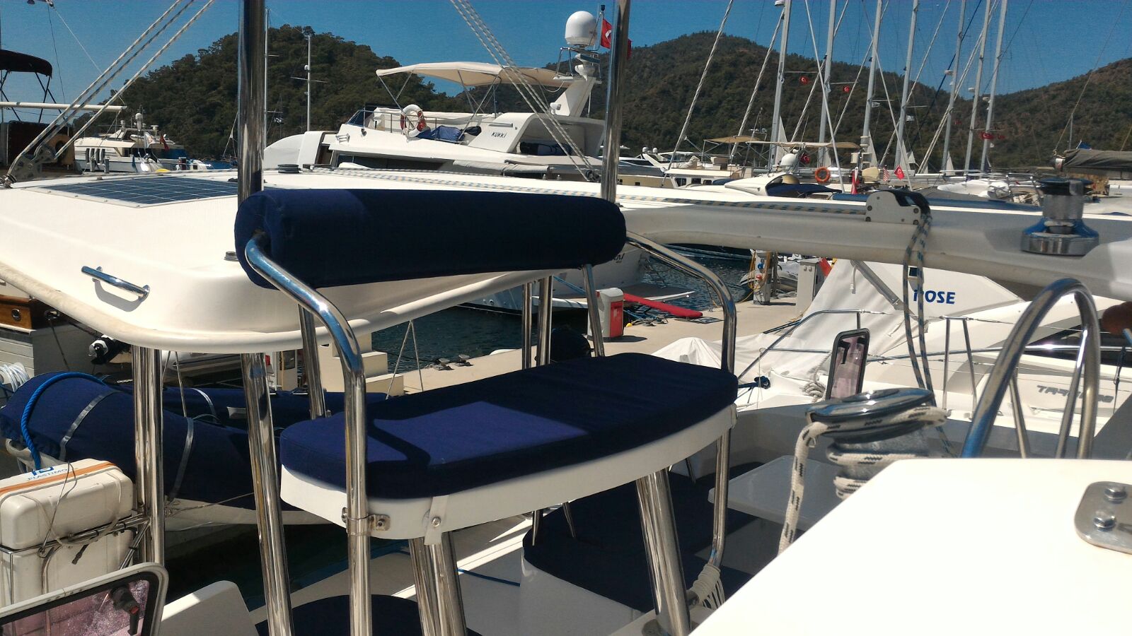 | Outside | 12 V-Anschluss, 220 V-Landanschluss, Anker mit Kette, Badeleiter, Biminitop, Bootshaken, Cockpitdusche, Cockpitlautsprecher, Cockpitleuchte, Cockpitpolster, Deckbürste, Dieselkanister , elektr. Ankerwinsch, Fender, Festmacherleinen, Gangway, Kugelfender, Kunststoff-Eimer (Pütz), Schnorchelausrüstung, Solaranlage, Wantenschneider |