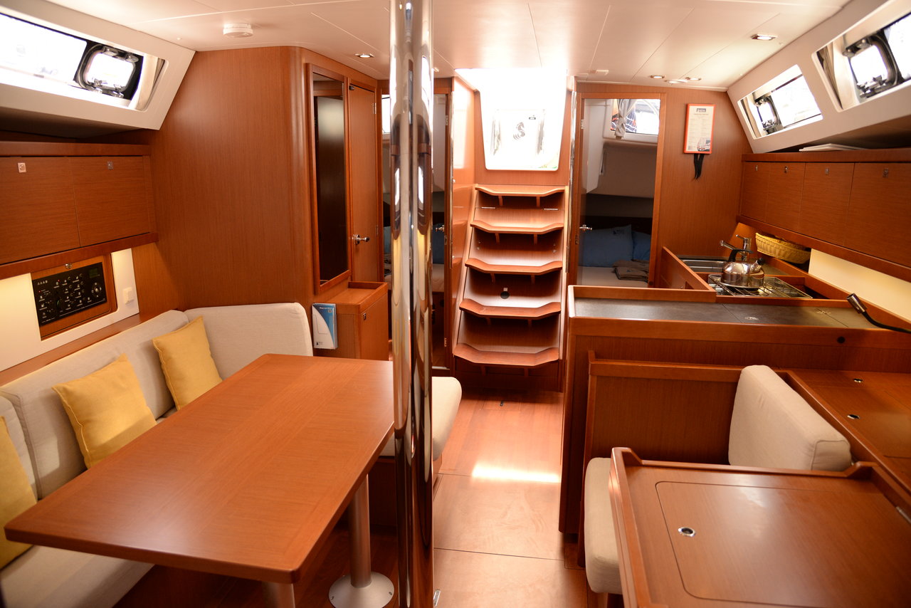 | Navigation | Barometer, Echolot, Fernglas, GPS mit Kartenplotter im Cockpit, Hafenhandbücher, Handpeilkompass, Kompass, Navigationsbesteck, Seekarten, Sumlog, Windmesser |