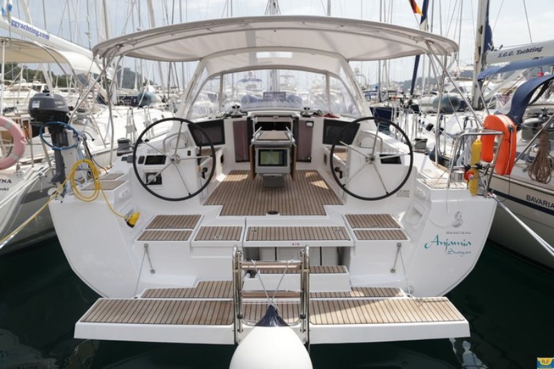 Anker mit Kette, Badeleiter, Badeplattform, Benzinkanister, Biminitop, Bootshaken, Cockpitdusche, Cockpitlautsprecher, Cockpitleuchte, Cockpitpolster, Cockpittisch, Deckbürste, Dieselkanister , elektr. Ankerwinsch, Fender, Festmacherleinen, Gangway, Kugelfender, Kunststoff-Eimer (Pütz), Schnorchelausrüstung, Solaranlage, Sonnensegel, Sprayhood, Teak im Cockpit, Wantenschneider, Wasserkanister , Wasserschlauch, Windex, Winschen |