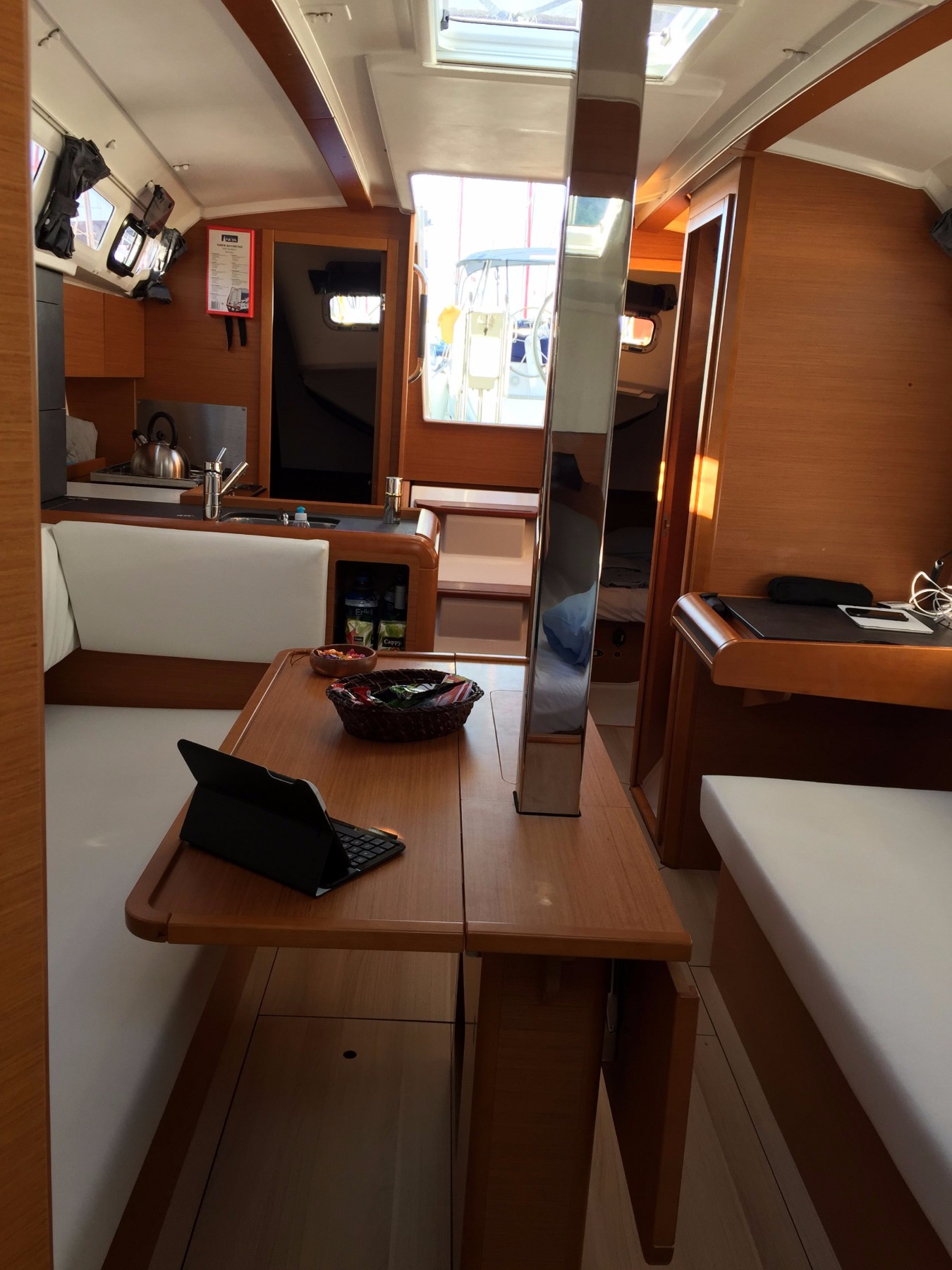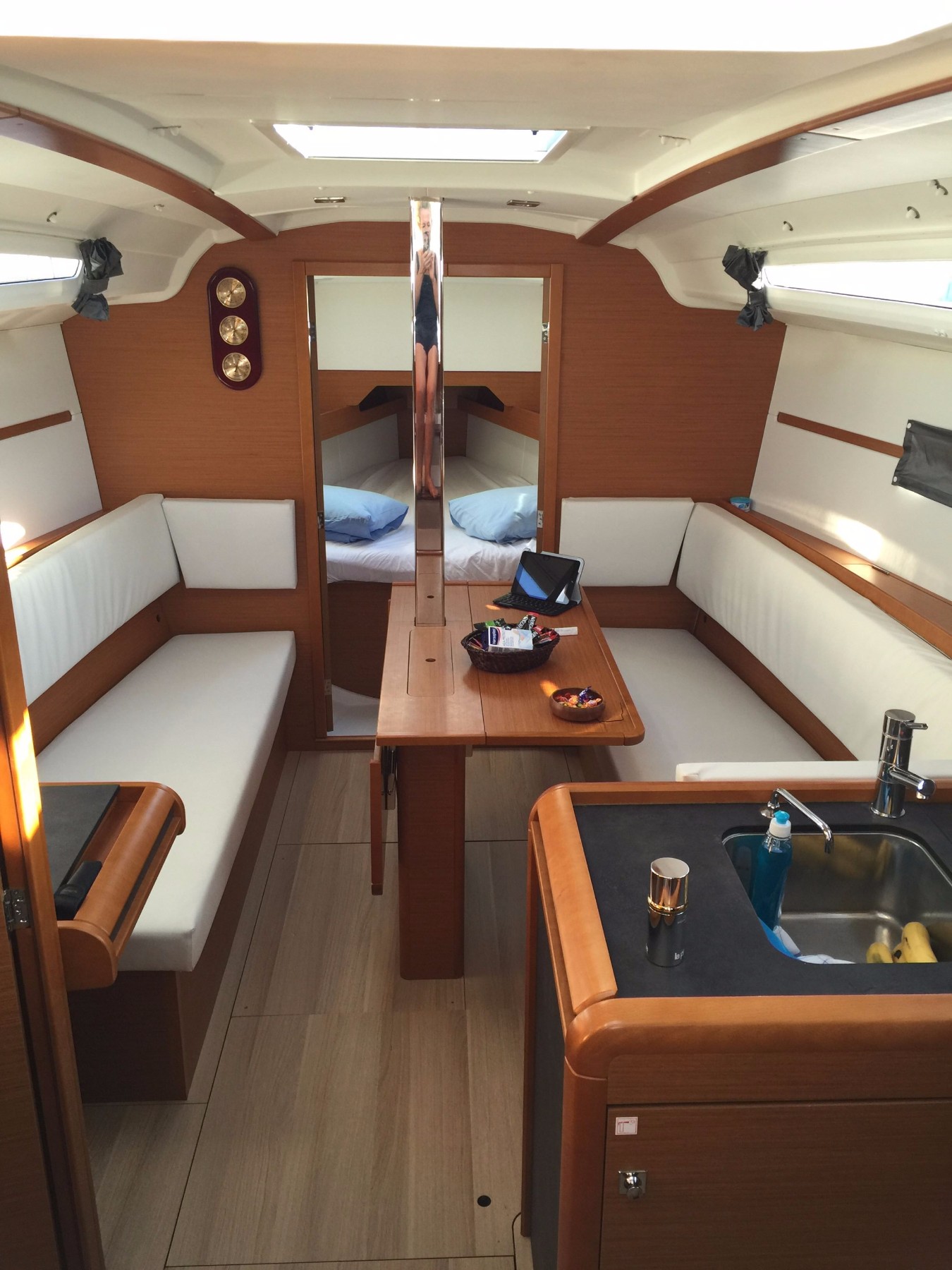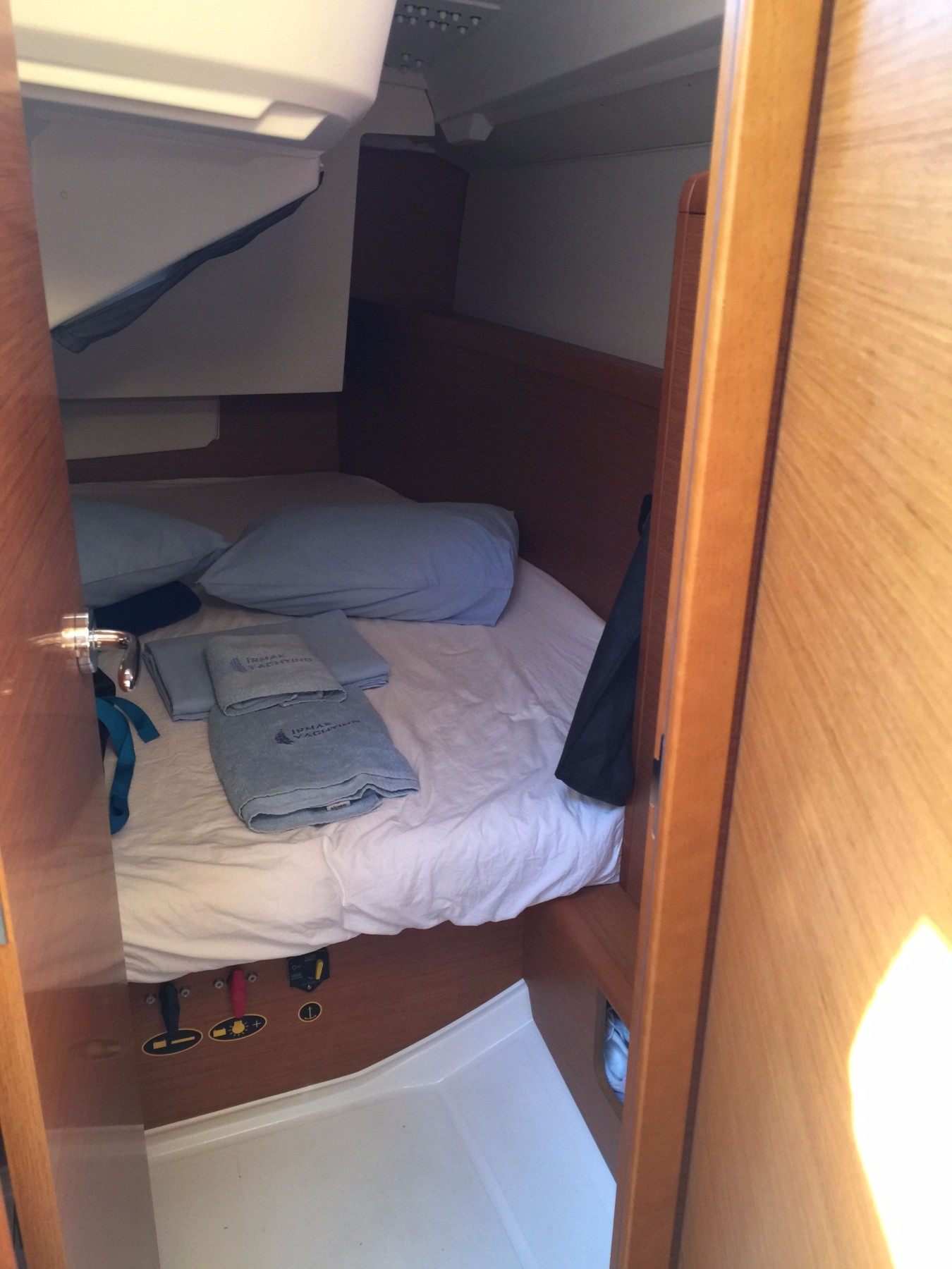 | Outside | Ankerwinsch, Badeleiter, Biminitop, Bootshaken, Cockpittisch, Deckbürste, Dieselkanister , elektr. Ankerwinsch, Fender, Festmacherleinen, Sprayhood, Treibanker, Wantenschneider, Wasserkanister , Wasserschlauch, Winschen |
