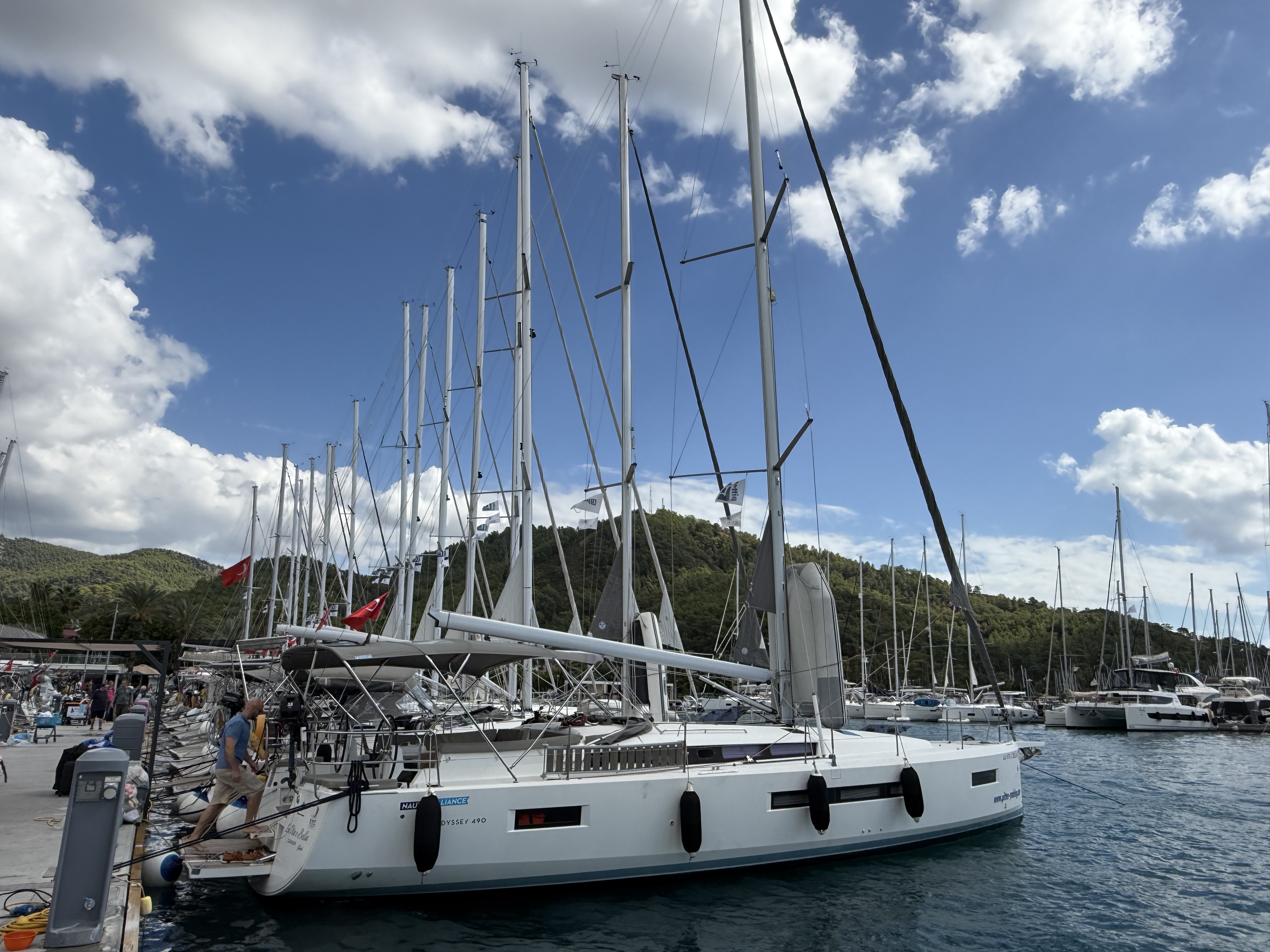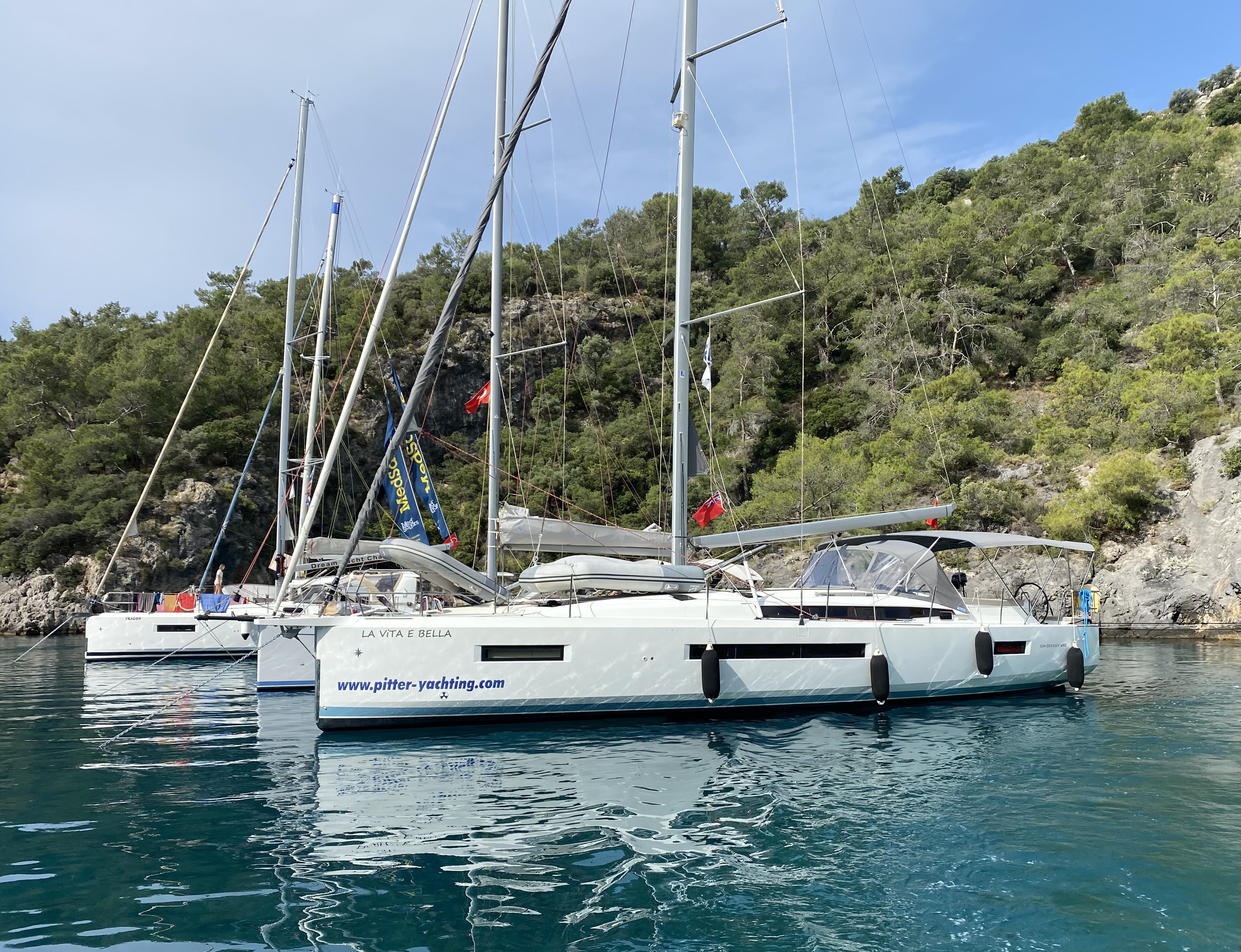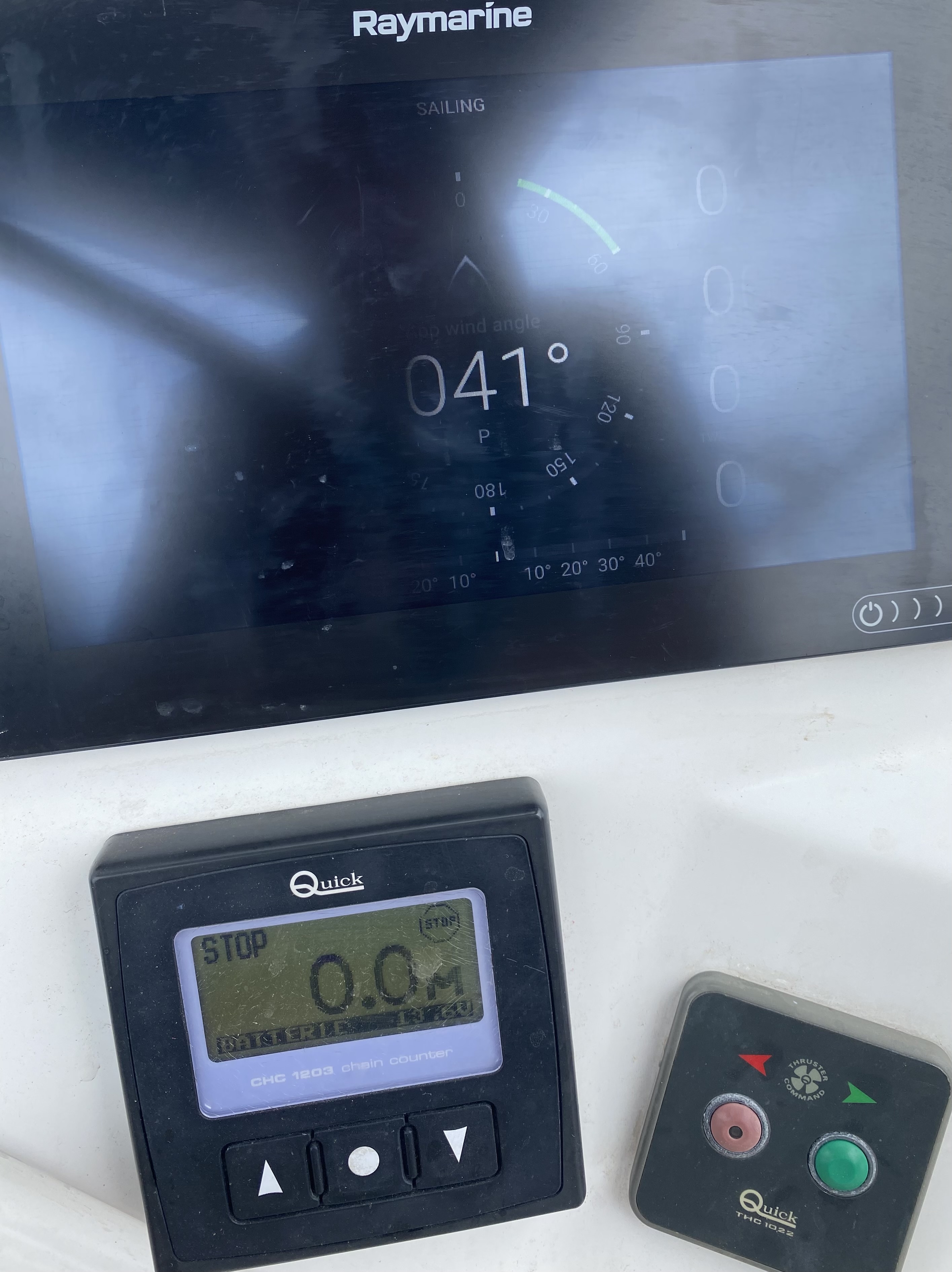 | Navigation | Barometer, Fernglas, GPS mit Kartenplotter im Cockpit, Hafenhandbücher, Handpeilkompass, Navigationsbesteck, Seekarten, Tridata (Log, Echolot, Windm.) |