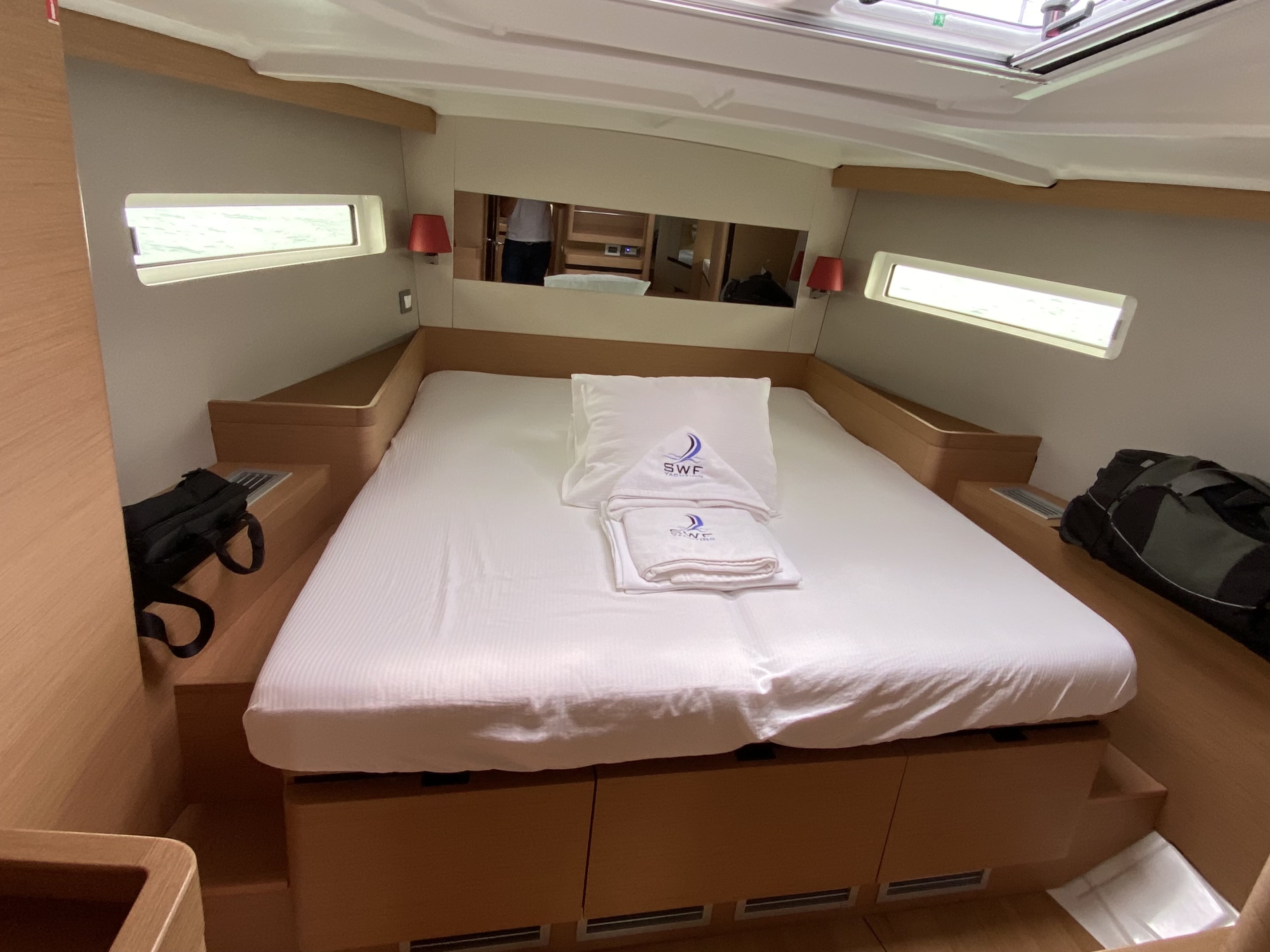 | Safety | Autopilot, Blitzboje, Bootsmannstuhl, Bordapotheke, Bordwerkzeug, Bugstrahlruder, Feststoffschwimmwesten, Feuerlöscher, Lifebelts, Motor-Ersatzteile, Nebelhorn, Notsignale, Radarreflektor, Reparaturset für Beiboot, Rettungsinsel, Suchscheinwerfer, Taschenlampe, UKW-Funk, Zweitanker |