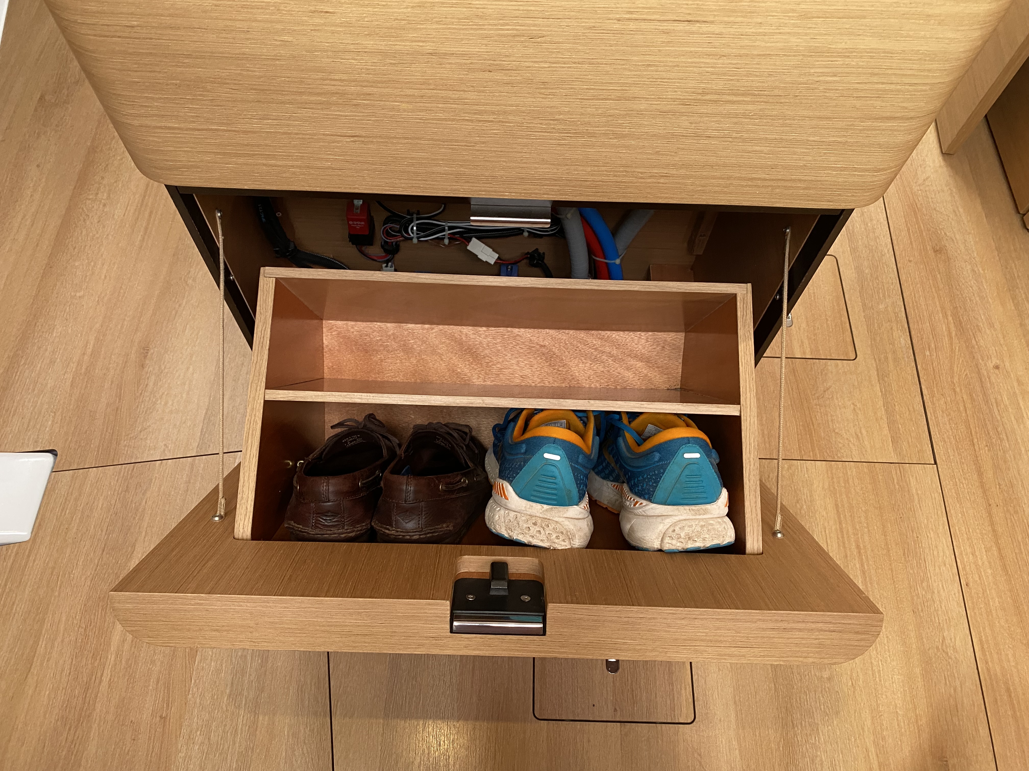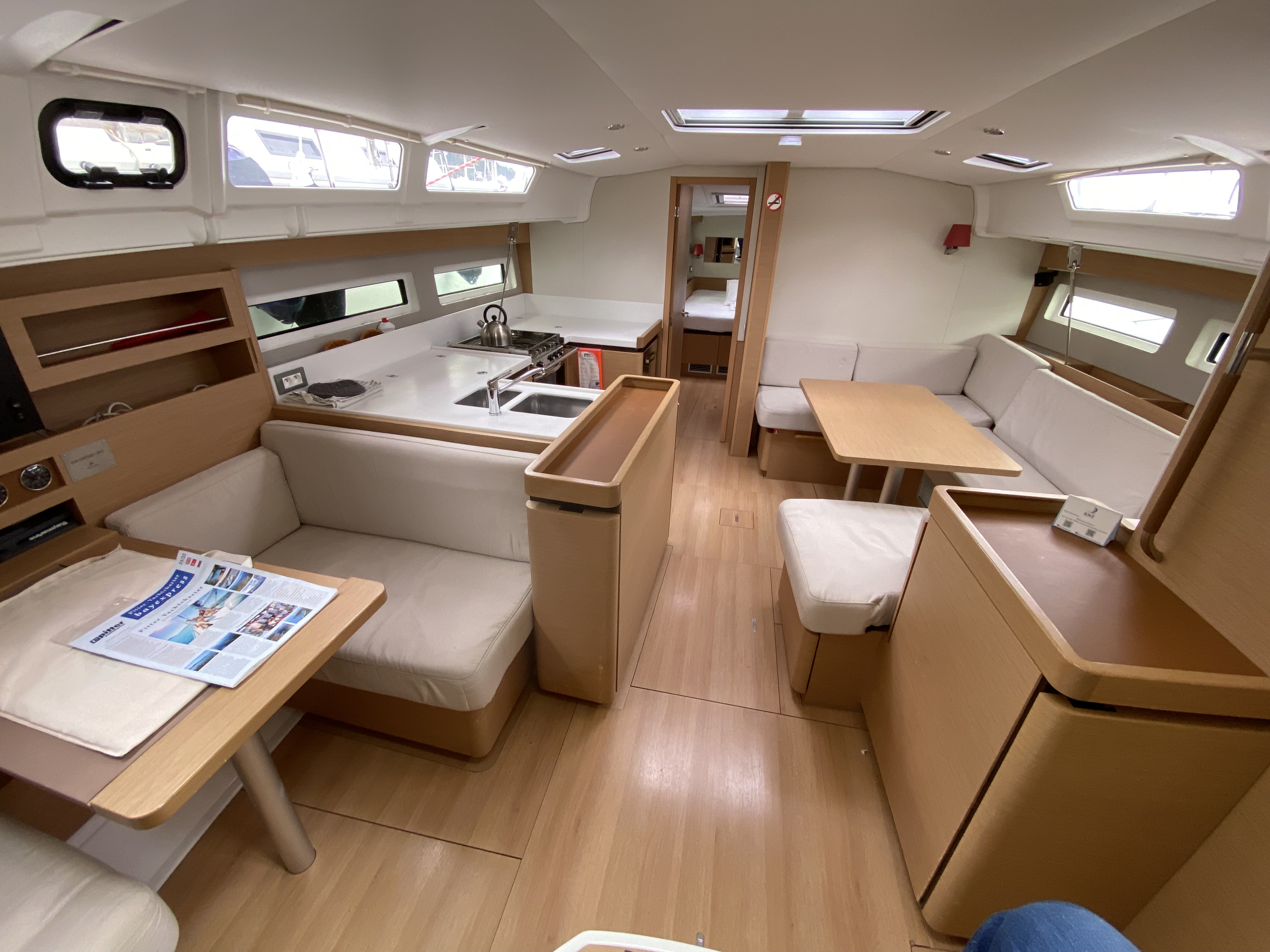 | Inside | Borduhr, Generator, Heizung, Inverter 12V/220V, Klimaanlage (ohne Landstrombedarf), Kühlschrank, Ladegerät, Luftpumpe für Beiboot, Pantryausstattung, Radio, Salontisch absenkbar, USB Steckdose, Warmwasser |