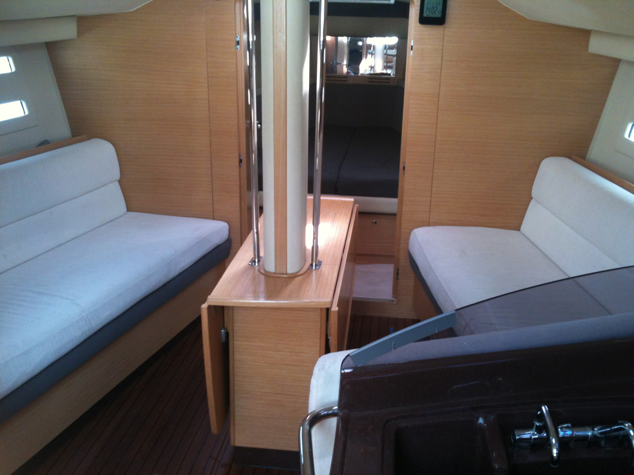 | Navigation | Barometer, Fernglas, GPS mit Kartenplotter im Cockpit, Hafenhandbücher, Handpeilkompass, Navigationsbesteck, Seekarten, Tridata (Log, Echolot, Windm.), Windmesser |