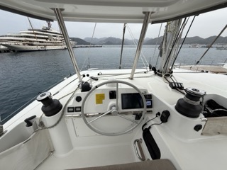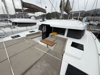 | Outside | Anker mit Kette, Badeplattform, Biminitop, Cockpitdusche, Cockpitlautsprecher, Cockpitpolster, Cockpittisch, Deckpolster, Grill, Solaranlage |