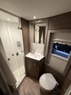 | Inside | Backofen, FUSION Sound System, Gasherd, Gefrierschrank, Generator, Geschirrspüler, Inverter 12V/220V, Klimaanlage (ohne Landstrombedarf), Kühlschrank, Ladegerät, Pantryausstattung, TV, Warmwasser, Watermaker |