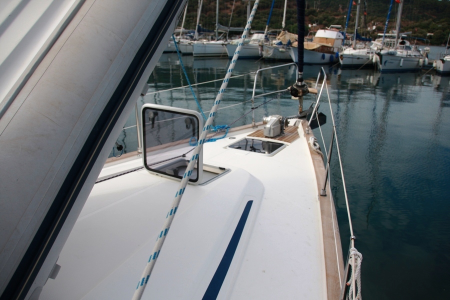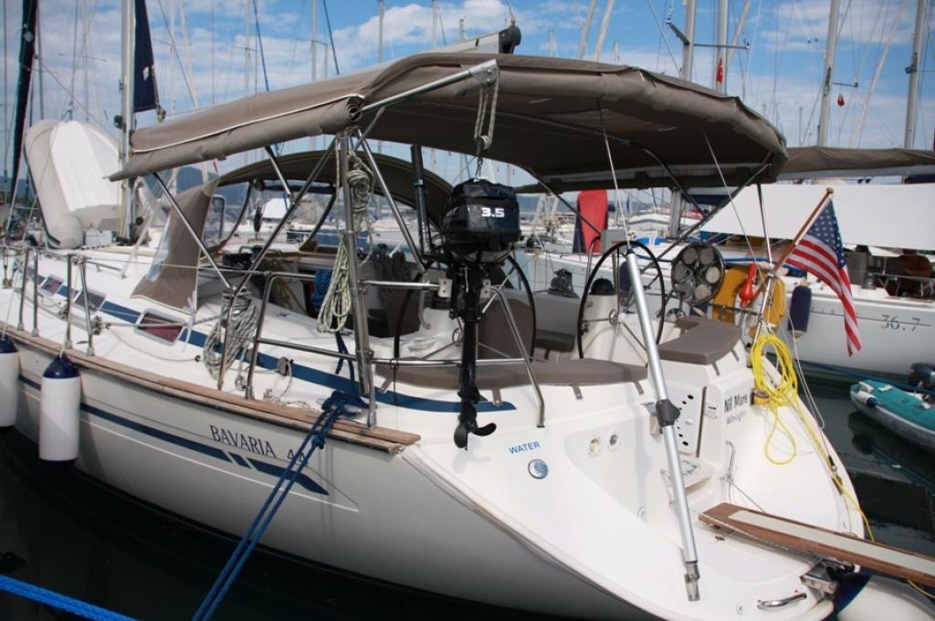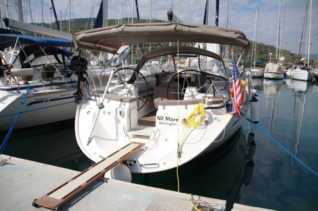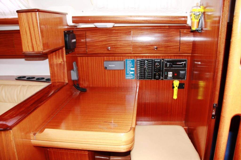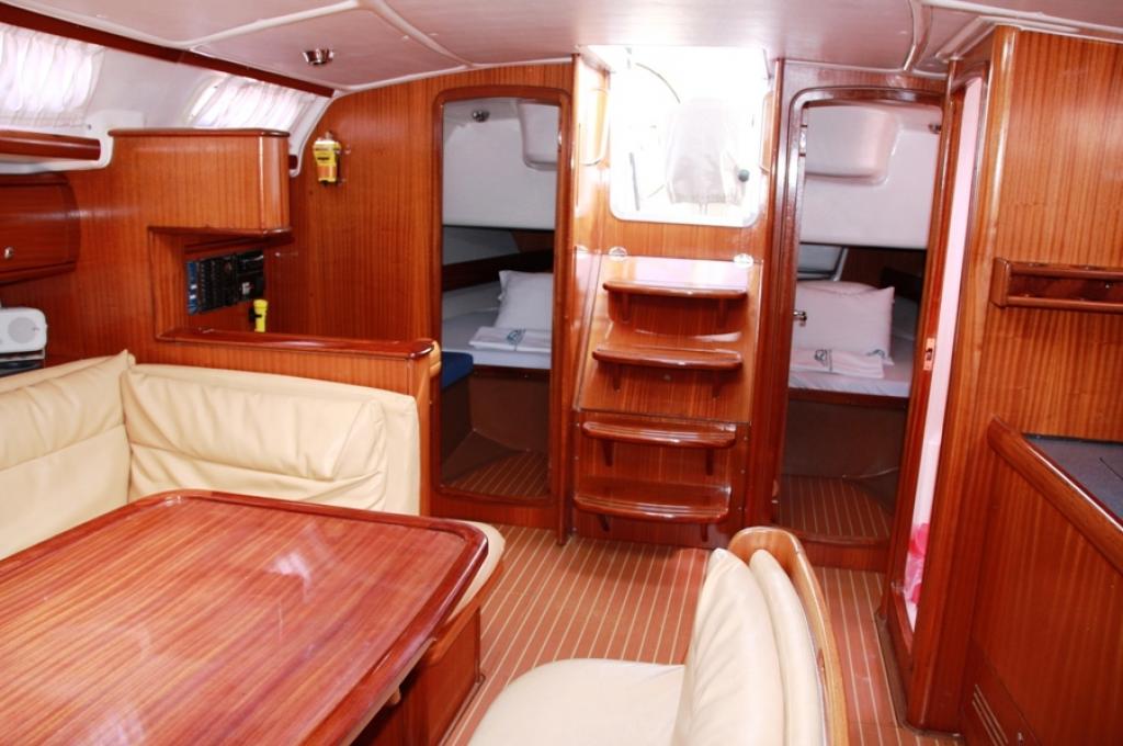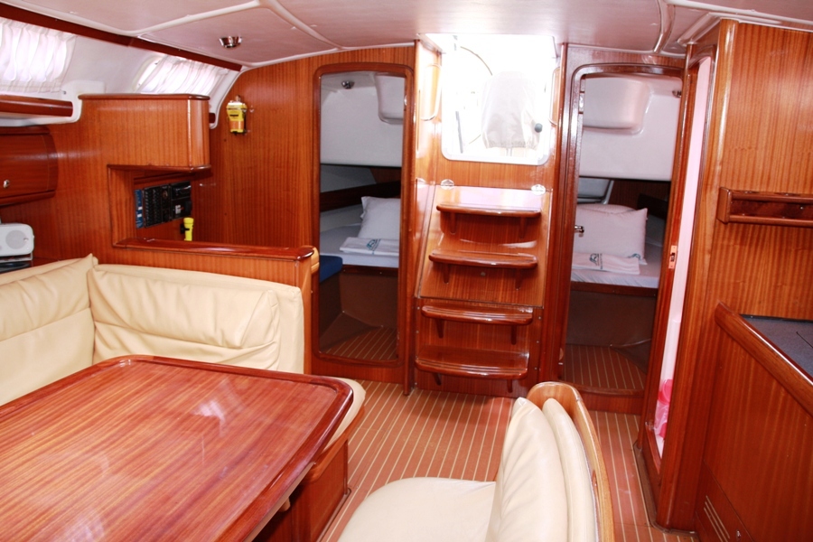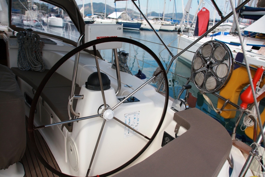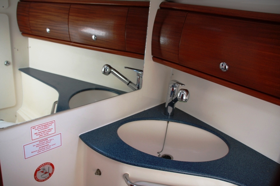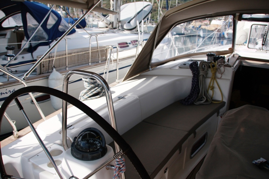 | Outside | 220 V-Landanschluss, Badeleiter, Biminitop, Cockpitdusche, Cockpitlautsprecher, Cockpitpolster, Cockpittisch, elektr. Ankerwinsch, Gangway, Sprayhood, Teak im Cockpit |