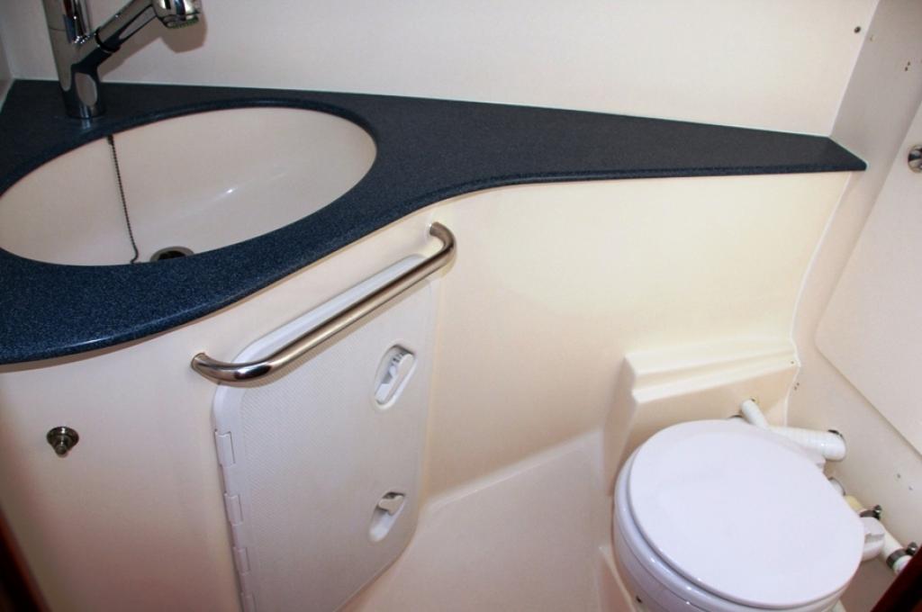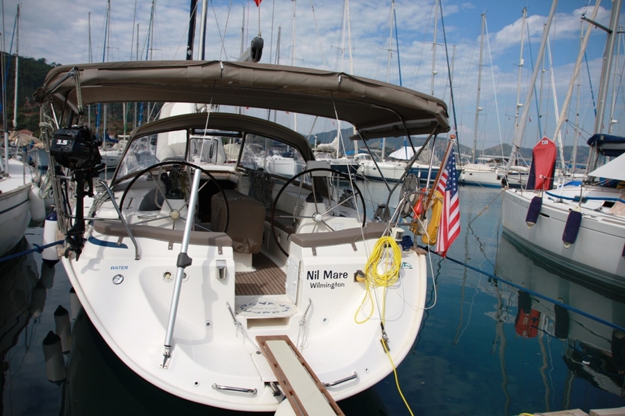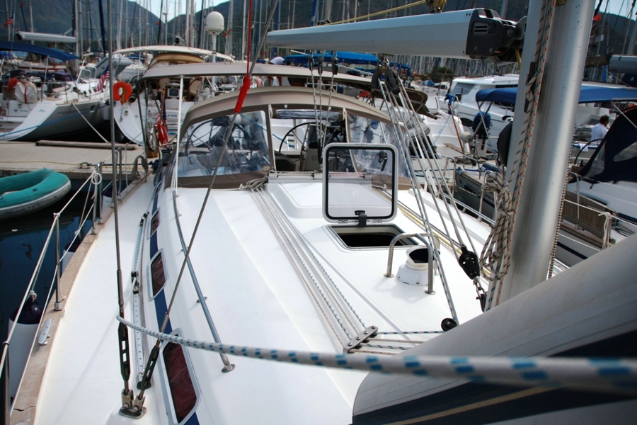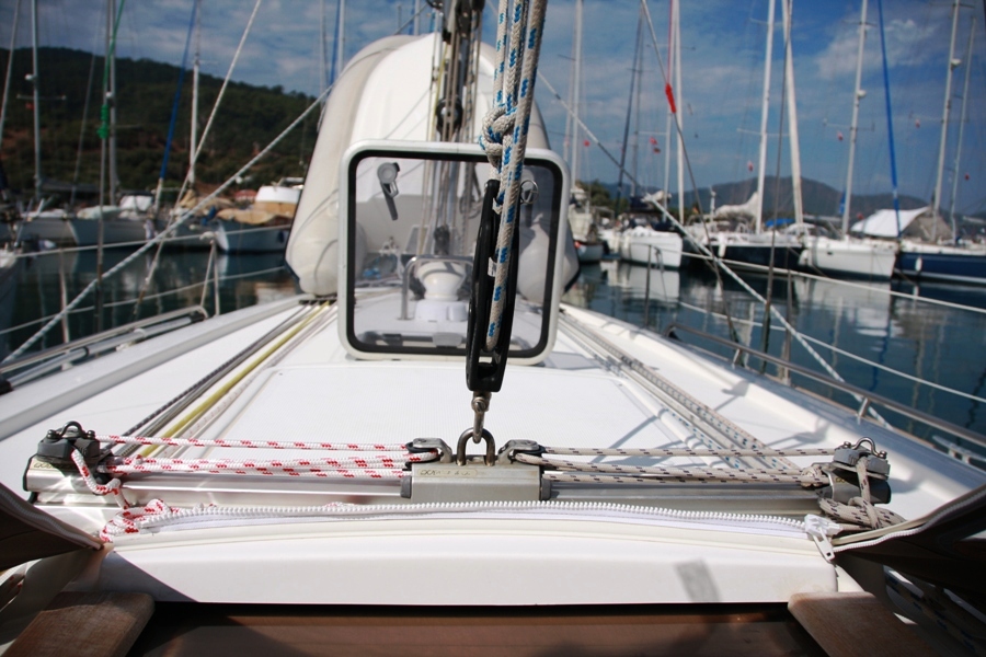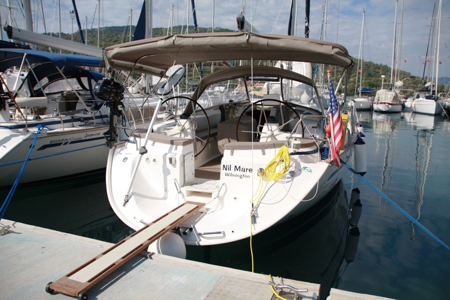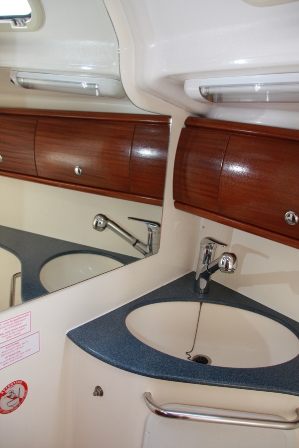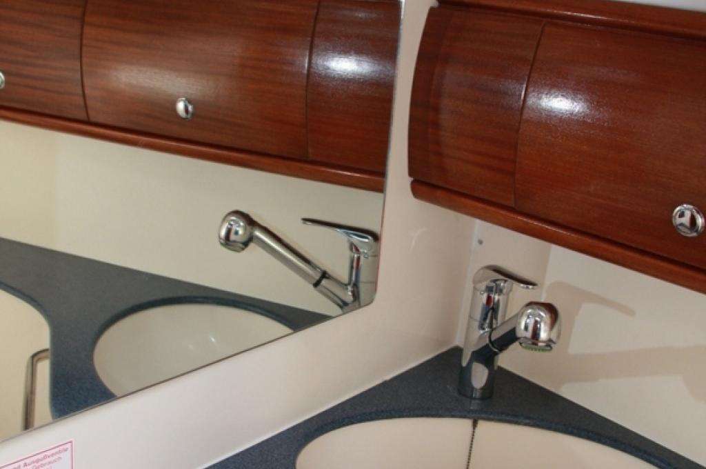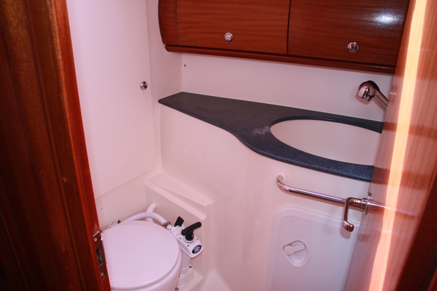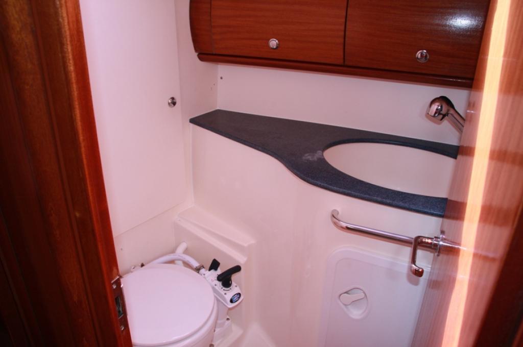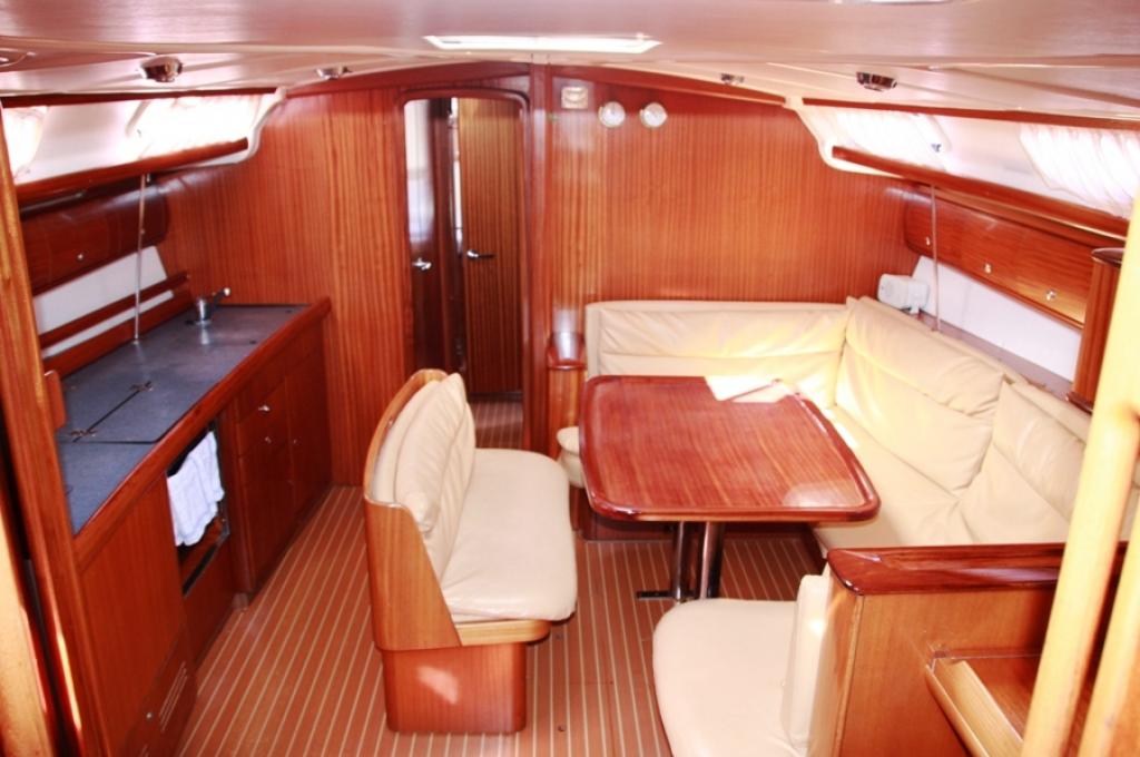 | Outside | 220 V-Landanschluss, Badeleiter, Biminitop, Cockpitdusche, Cockpitlautsprecher, Cockpitpolster, Cockpittisch, elektr. Ankerwinsch, Gangway, Sprayhood, Teak im Cockpit |