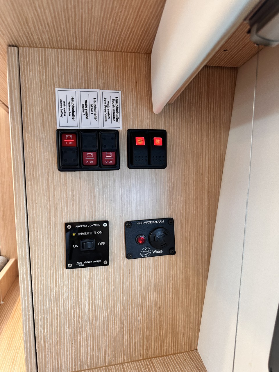 | Safety | AIS Empfänger, Autopilot, Bootsmannstuhl, Bugstrahlruder, Navigationslichter, UKW-Funk |