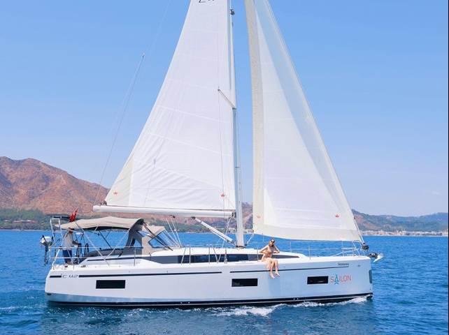 | Outside | Anker mit Kette, Badeplattform, Biminitop, Cockpitdusche, Cockpitlautsprecher, Cockpittisch, Deckbeleuchtung, elektr. Ankerwinsch, Fallwinschen, Faltpropeller, Fender, Festmacherleinen, Rodkicker, Seereling, Solaranlage, Sprayhood, Teak im Cockpit |