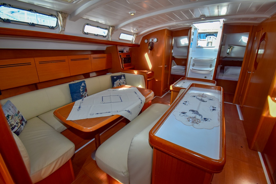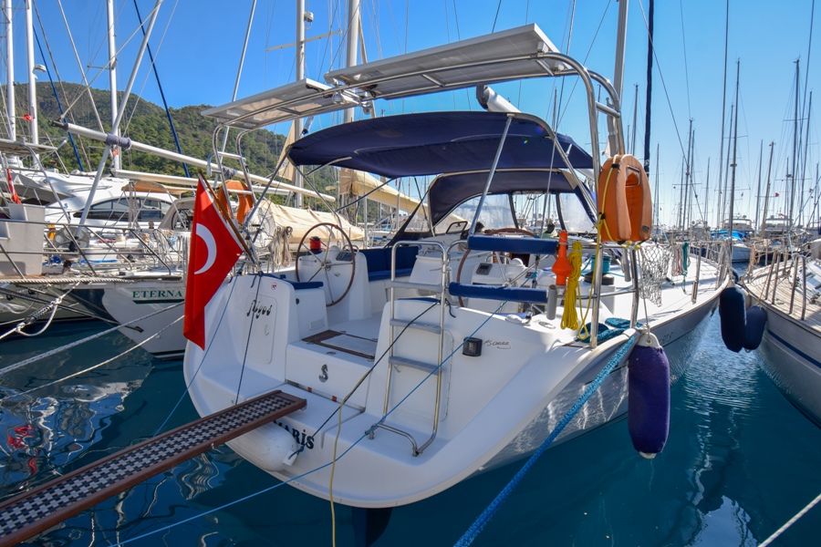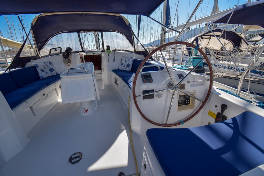 Outside 220 V-Landanschluss, Biminitop, Bolzenschneider, Bootshaken, Cockpitdusche, Cockpitlautsprecher, Cockpitleuchte, Cockpitpolster, Cockpittisch, elektr. Ankerwinsch, Fender, Gangway, Solaranlage, Sprayhood, Windex, Winschen