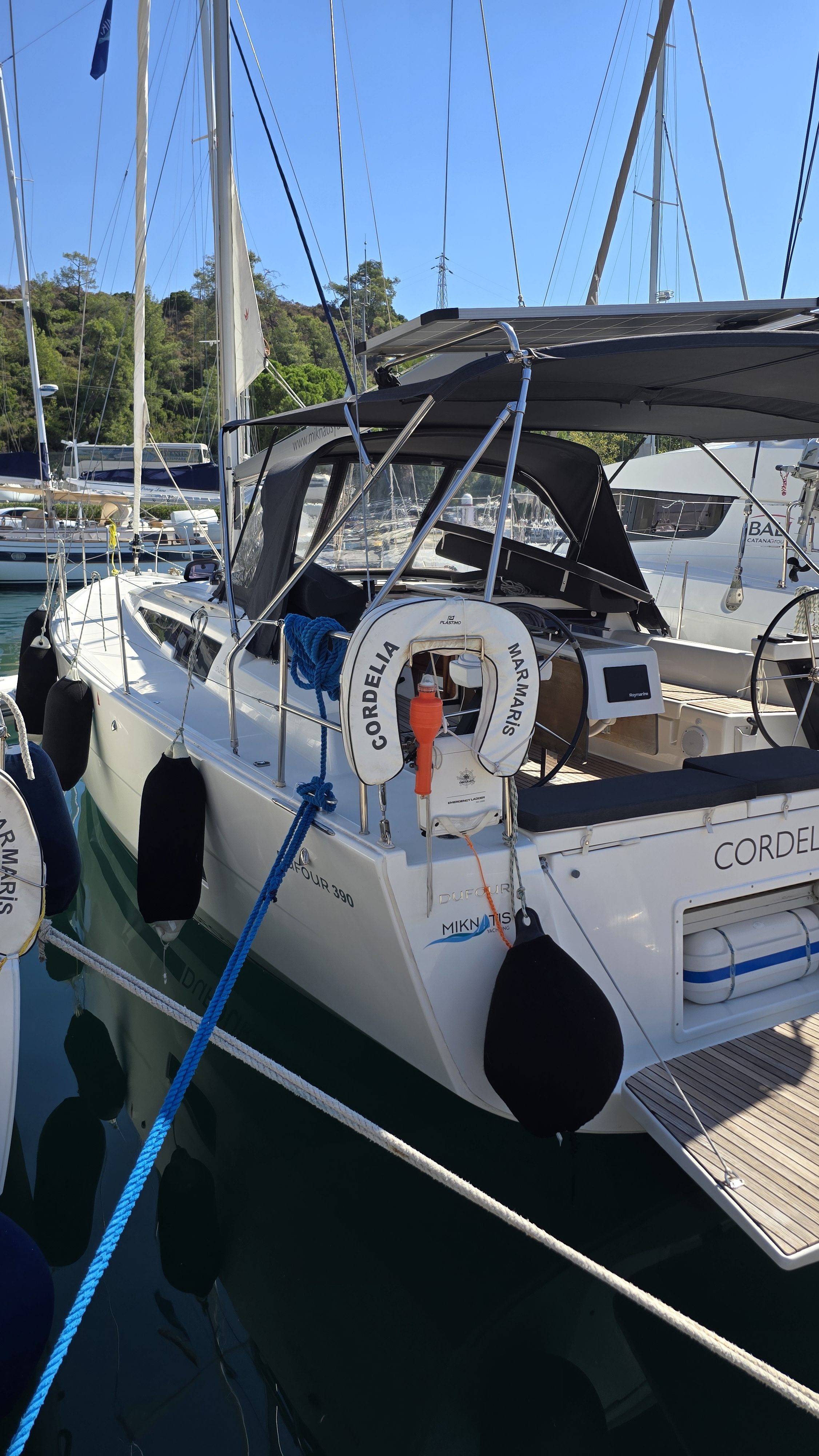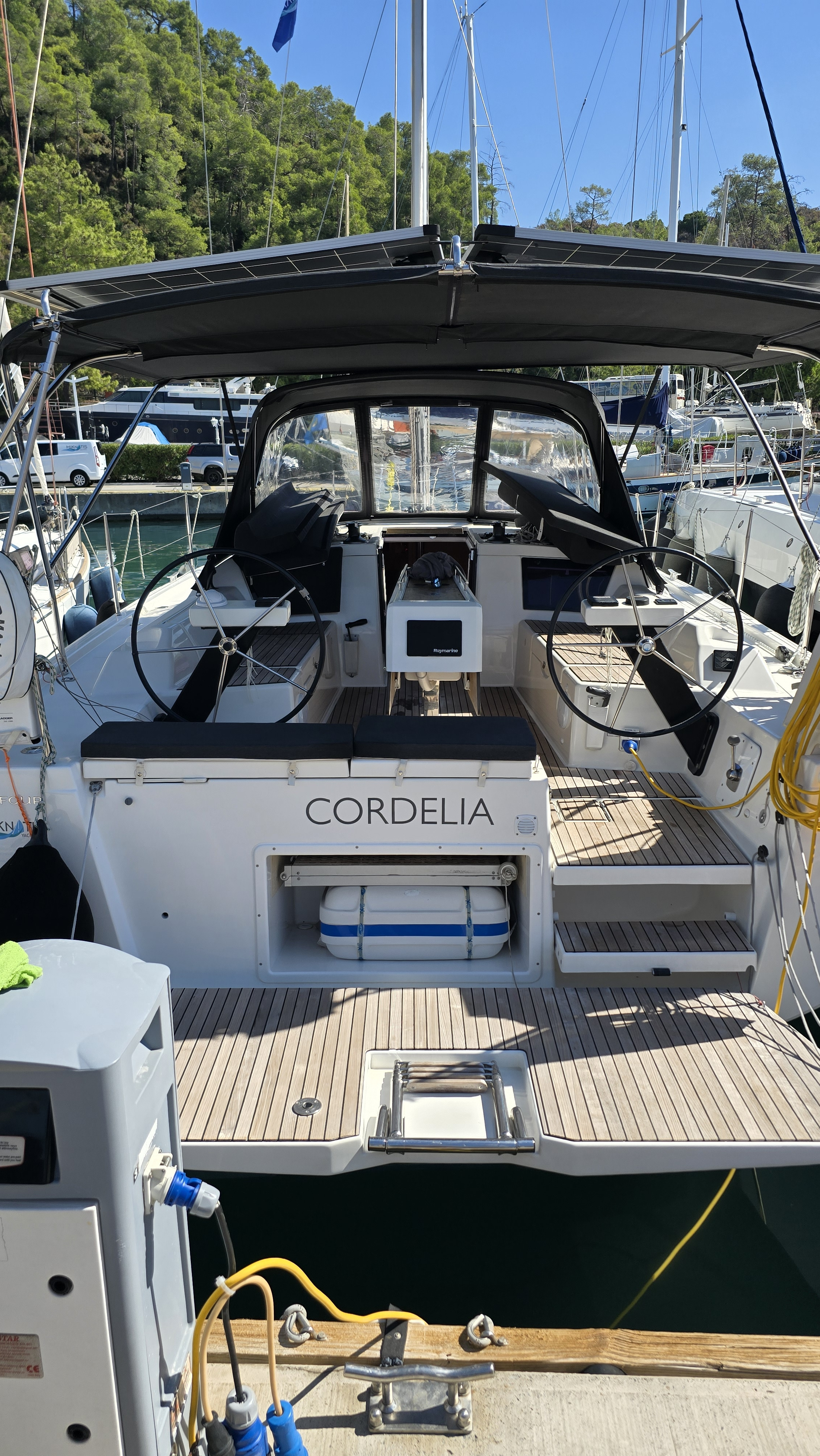| Outside | 220 V Landstromkabel mit Ladegerät, Badeplattform, Biminitop, Cockpitlautsprecher, Cockpitpolster, Cockpittisch, Fernsteuerung für elektr. Ankerwinsch, Festmacherleinen, Sprayhood, Teak im Cockpit, Windex |