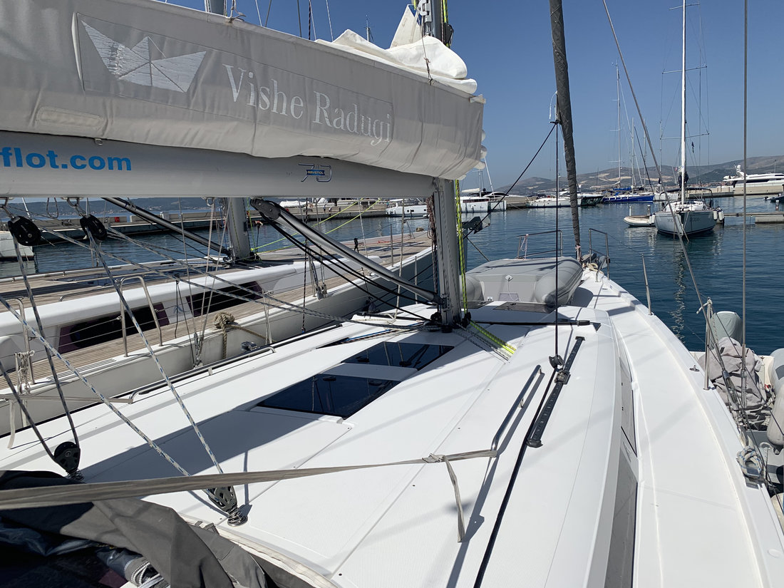 | Outside | Biminitop, Cockpittisch, Delta-Anker, elektr. Ankerwinsch, Fender, Festmacherleinen, Sprayhood, Teak im Cockpit, Winschen |