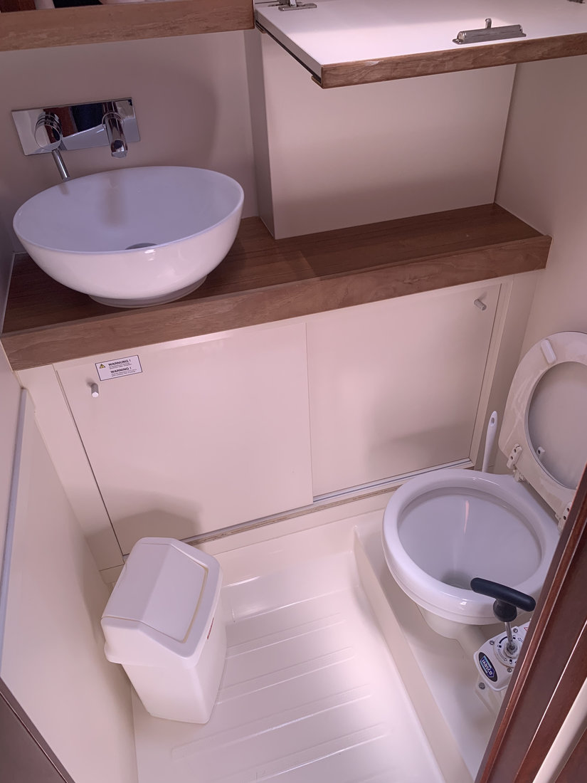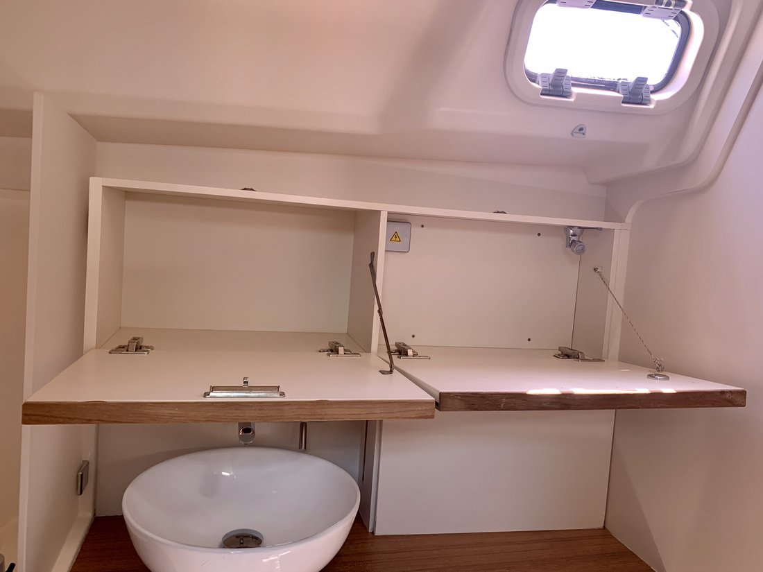 | Outside | Biminitop, Cockpittisch, Delta-Anker, elektr. Ankerwinsch, Fender, Festmacherleinen, Sprayhood, Teak im Cockpit, Winschen |