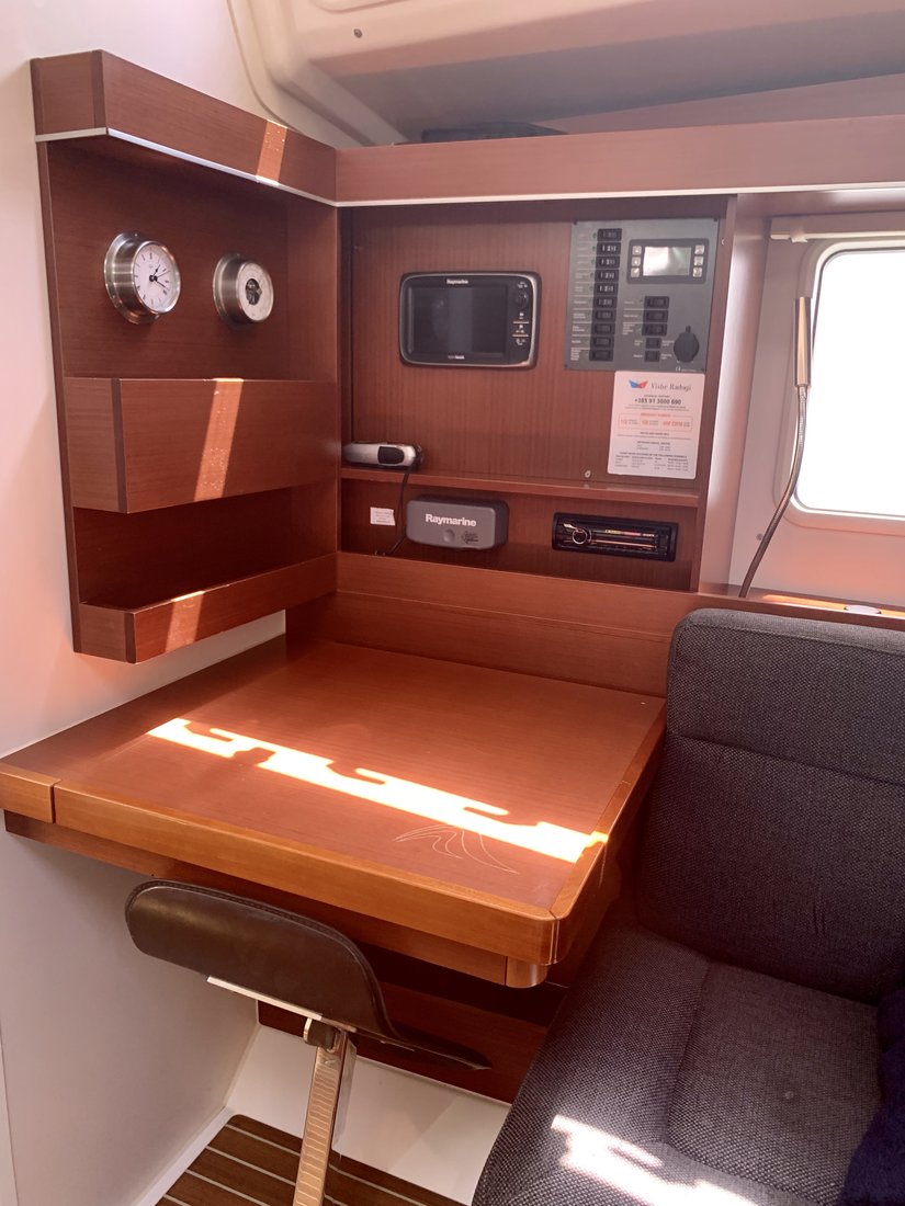 | Navigation | GPS mit Kartenplotter, Hafenhandbücher, Seekarten, Tridata (Log, Echolot, Windm.), Windmesser |
