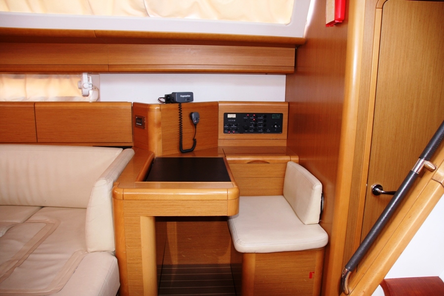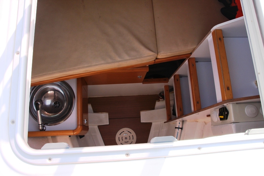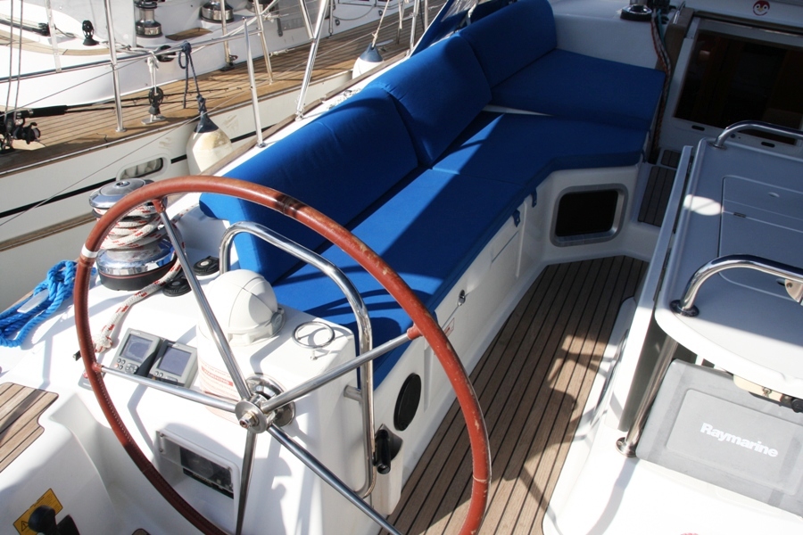 | Outside | 220 V-Landanschluss, Biminitop, Bolzenschneider, Bootshaken, Cockpitdusche, Cockpitlautsprecher, Cockpitleuchte, Cockpitpolster, Cockpittisch, elektr. Ankerwinsch, Fender, Gangway, Solaranlage, Sprayhood, Teak im Cockpit, Windex, Winschen |