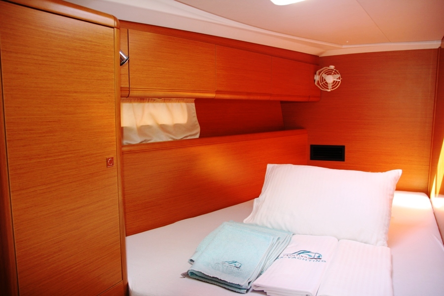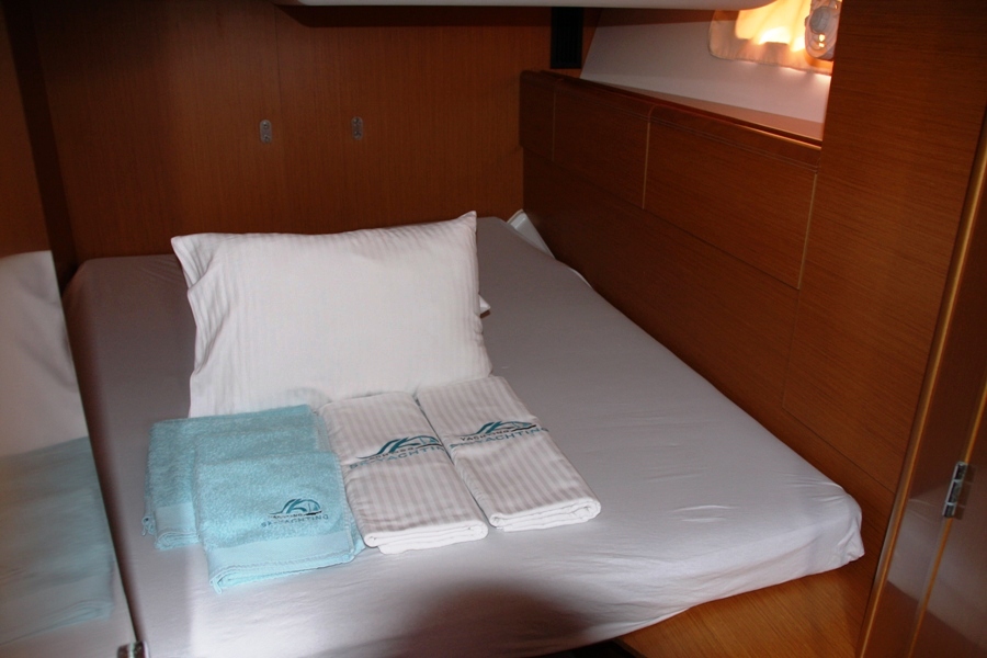 | Inside | Fäkalientank, Gefrierschrank, Generator, Inverter 12V/220V, Klimaanlage (ohne Landstrombedarf), Kühlschrank, Mikrowelle, Pantryausstattung, Radio, Salontisch absenkbar, USB Steckdosen in den Kabinen, Ventilatoren in Salon und Kabinen |
