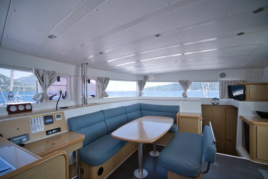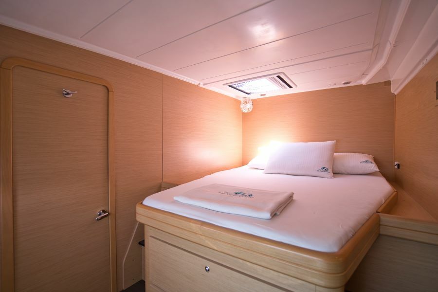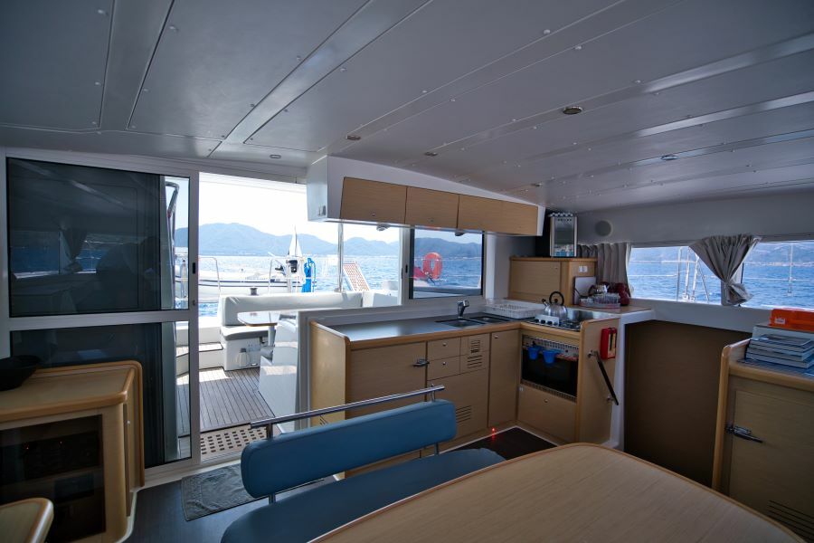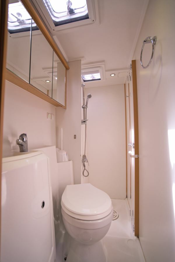 | Inside | 2. Kühlschrank, Fäkalientank, Generator, Heizung, Inverter 12V/220V, Klimaanlage (ohne Landstrombedarf), Kühlschrank, Pantryausstattung, Radio, USB Steckdosen in den Kabinen, Ventilatoren in Salon und Kabinen |