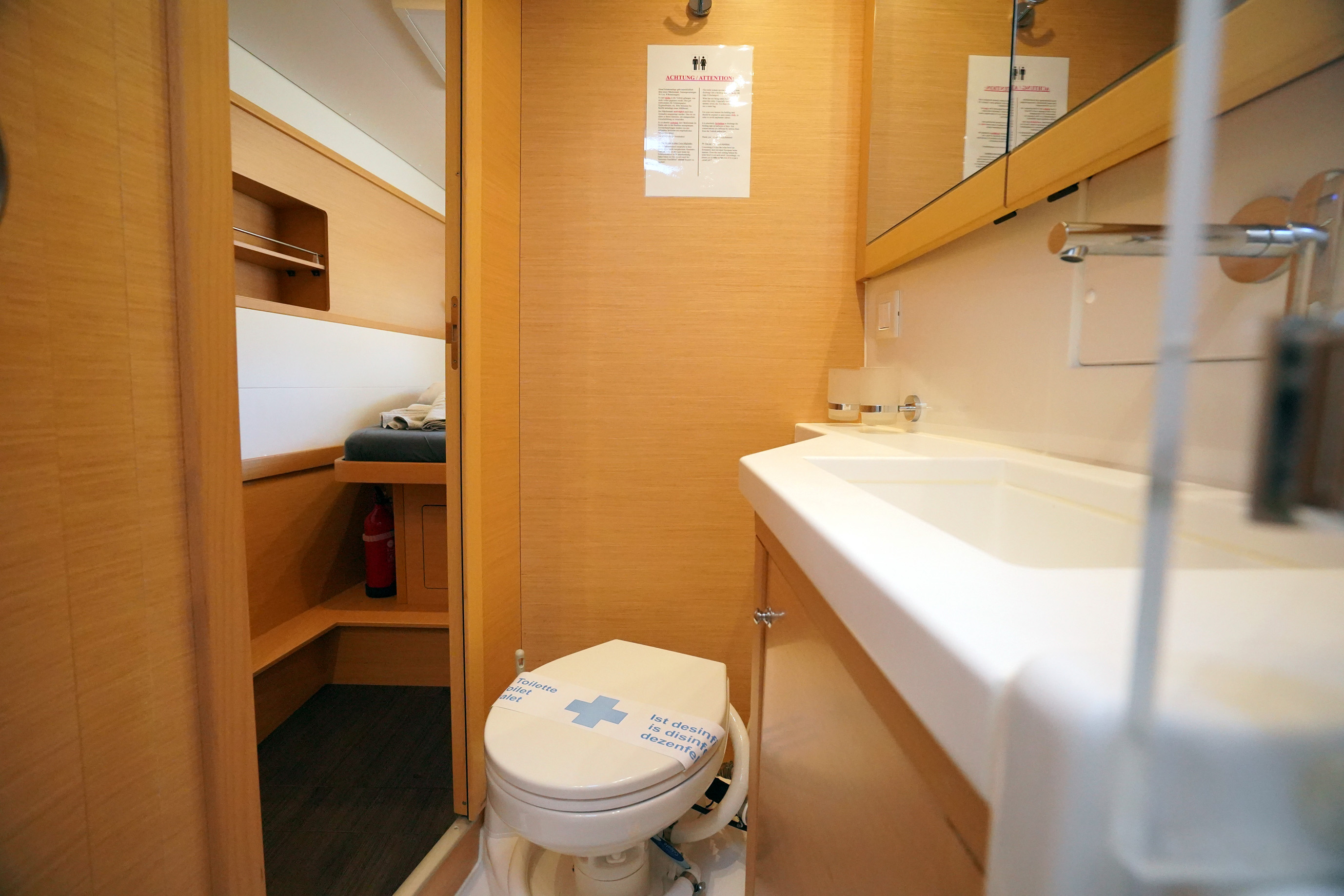 | Safety | Automatikwesten, Autopilot, Bilgepumpe, Bootsmannstuhl, Bordapotheke, Bordwerkzeug, elektr. Wetterstation, Feuerlöscher, Lifebelts, Löschdecke, Nebelhorn, Notpinne, Notsignale, Rettungsbojenlicht, Rettungsinsel, UKW-Funk |