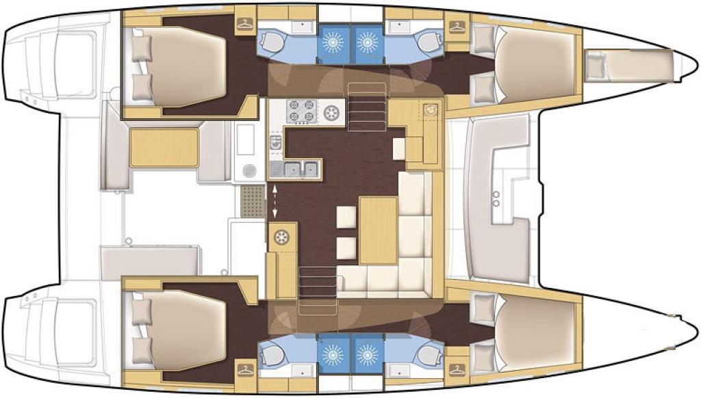 | Inside | Fäkalientank, Gefrierschrank, Generator, Inverter 12V/220V, Klimaanlage (ohne Landstrombedarf), Kühlschrank, Pantryausstattung, Radio, USB Steckdosen in den Kabinen, Ventilatoren in Salon und Kabinen |