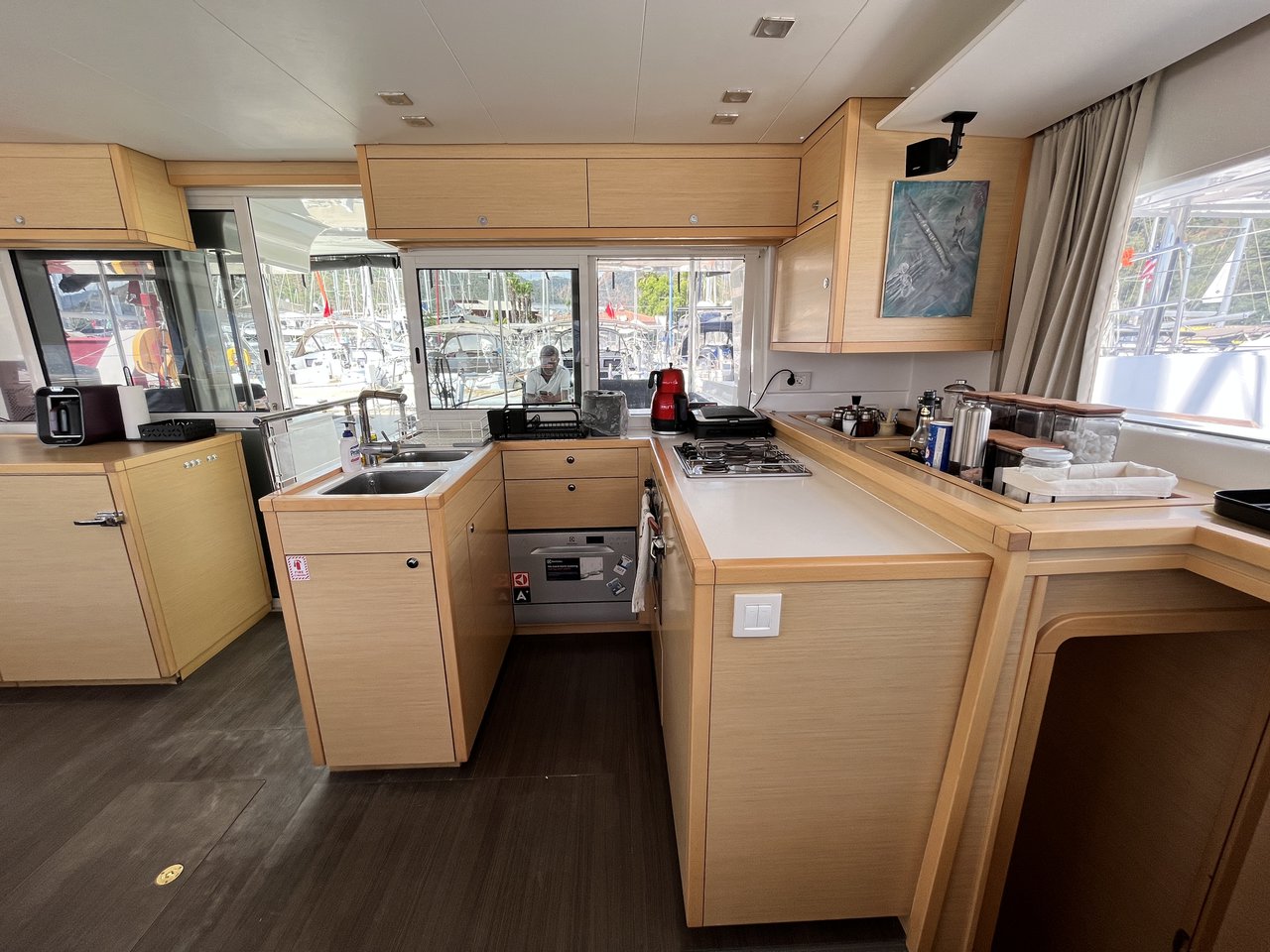 | Inside | Backofen, Eiswürfelmaschine, Gefrierschrank, Inverter 12V/220V, Kaffeemaschine, Klimaanlage, Kühlschrank, Pantryausstattung, Radio mit USB, TV, Watermaker, WC (elektr.) |