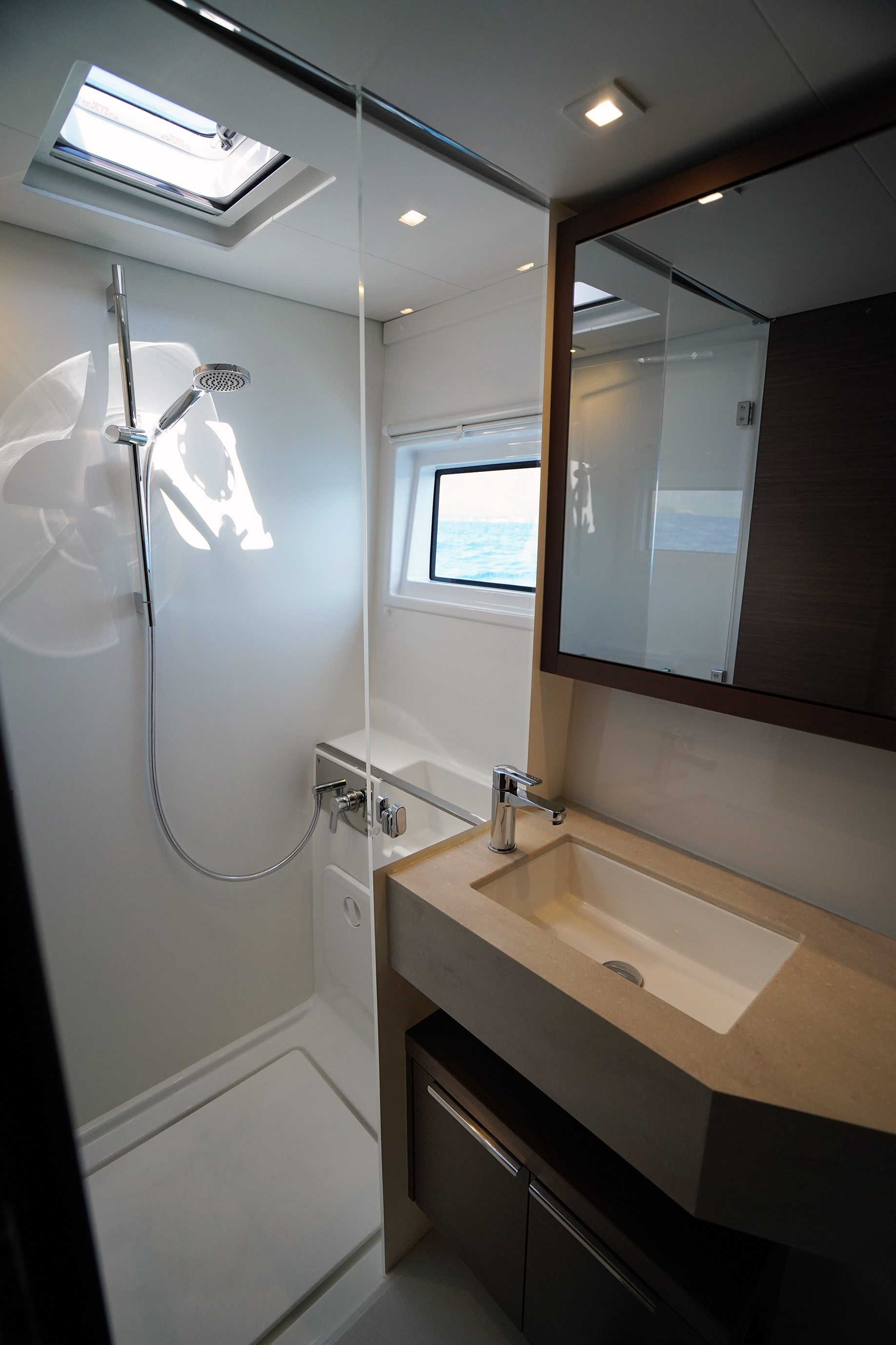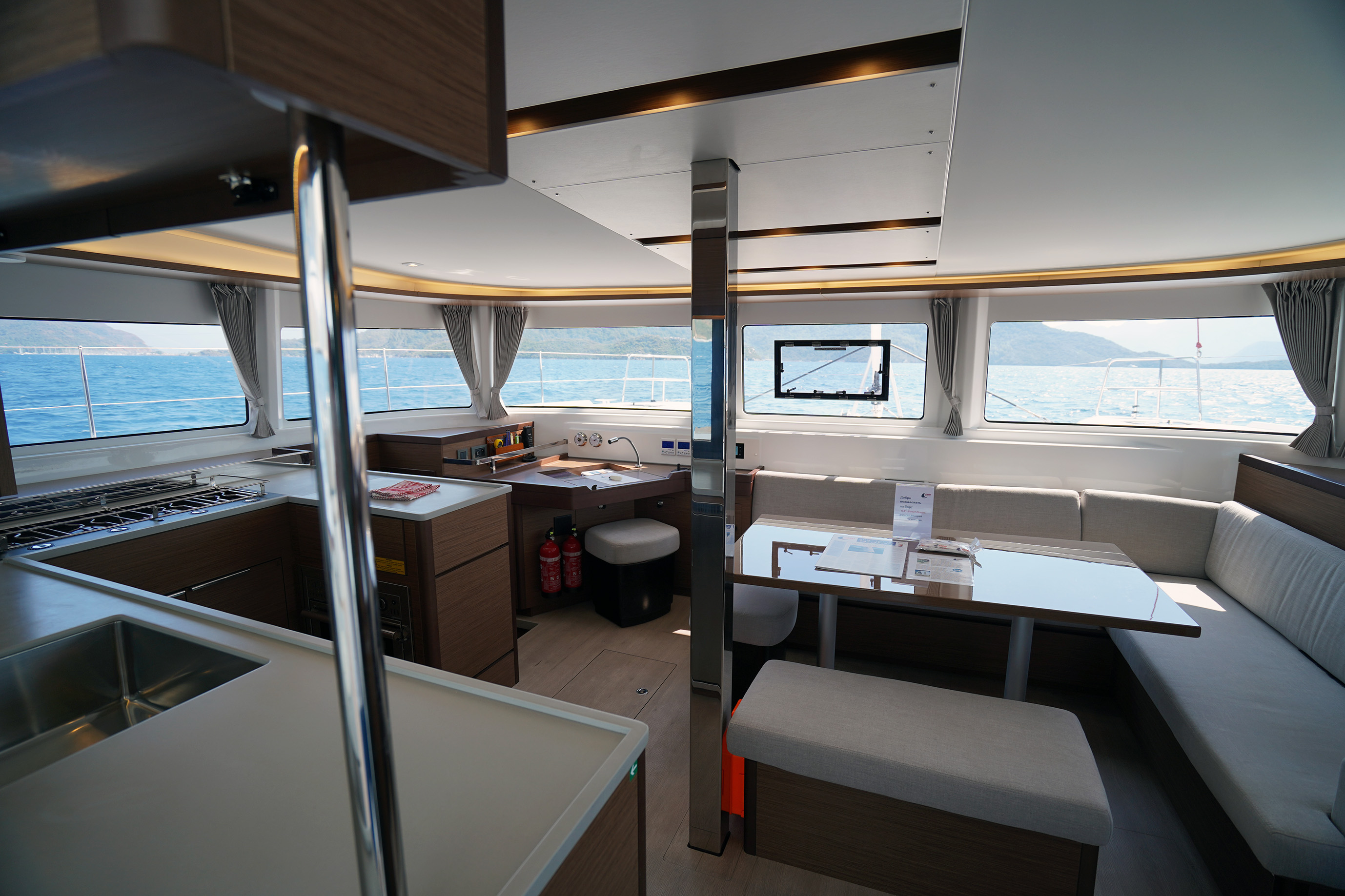 | Inside | Eiswürfelmaschine, Gasherd mit Backofen, Gefrierschrank, Generator, Geschirrspüler, Heizung, Inverter 12V/220V, Kaffeemaschine, Klimaanlage (ohne Landstrombedarf), Kühlschrank, Pantryausstattung, Radio mit CD und MP3, Watermaker, WC (elektr.) |