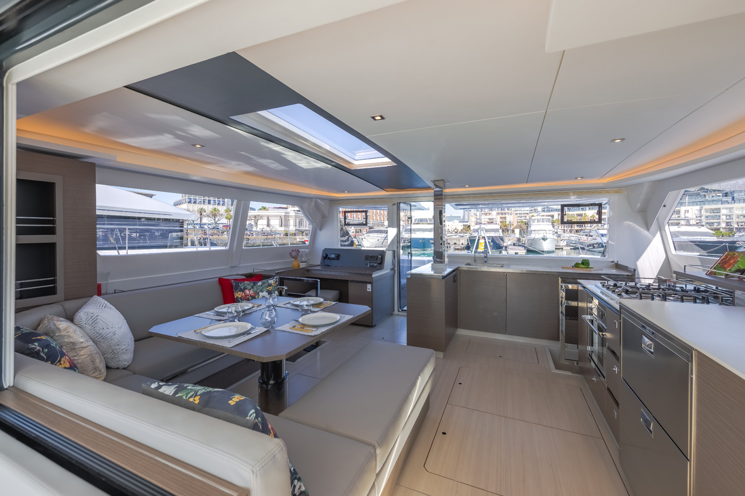 | Inside | 220V Steckdosen, Fäkalientank, Generator, Inverter 12V/220V, Klimaanlage (ohne Landstrombedarf), Kühlschrank, Ladegerät, Landstromkabel, Lautsprecher im Salon, Radio mit USB, Bluetooth und AUX-In, Salontisch absenkbar, USB Steckdose, Ventilatoren in Kabinen, Warmwasser, Watermaker, WC (elektr.) |
